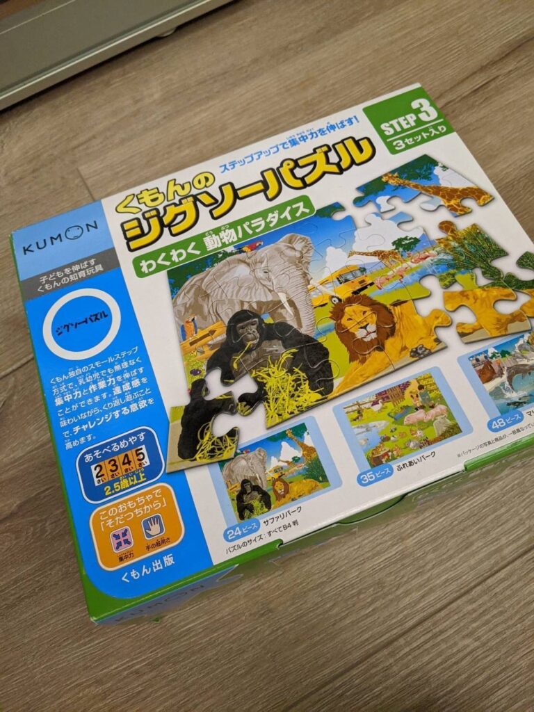 女兒兩歲半,最愛玩日本製kumon step3拼圖,可以獨立完成24、35片,48片的大人從旁協助也可以完成。