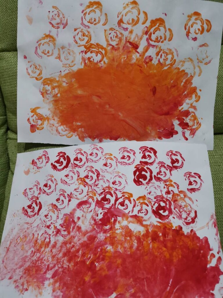 呆門每次到了玩顏料時間都超興奮,這次的青江菜花,原本很聽話的幫忙“蓋.蓋.蓋”,