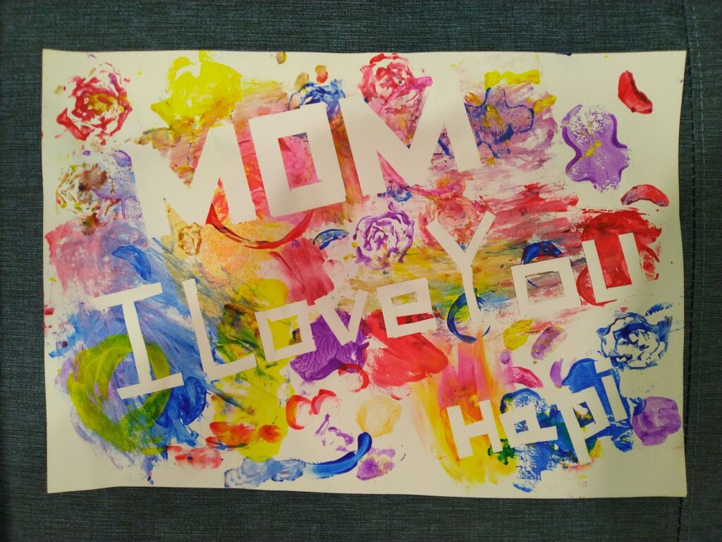 寶寶有點在意自己手沾到顏料,不過旁邊放一條毛巾之後就願意跟媽媽一起亂塗了,雖然他蓋一個就想擦一次…