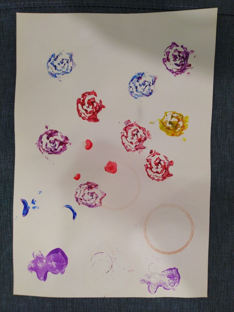 青江菜切太短,花瓣會糊在一起,還好大陸妹效果不錯~ 紙膠帶的這張完成了,另一張爸爸說想交給他加工,如果哪天真的加工完成再來分享