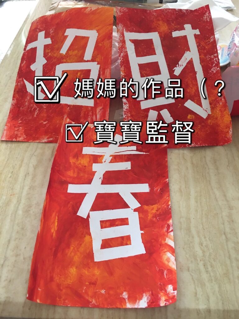 就找出塵封已久的紙膠帶,去年的春聯(?,貼了媽媽最需要的招財,後來想說銅臭味不要太重,還是再加碼個春😂
