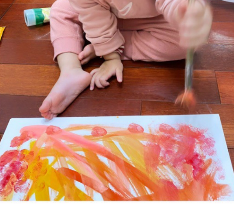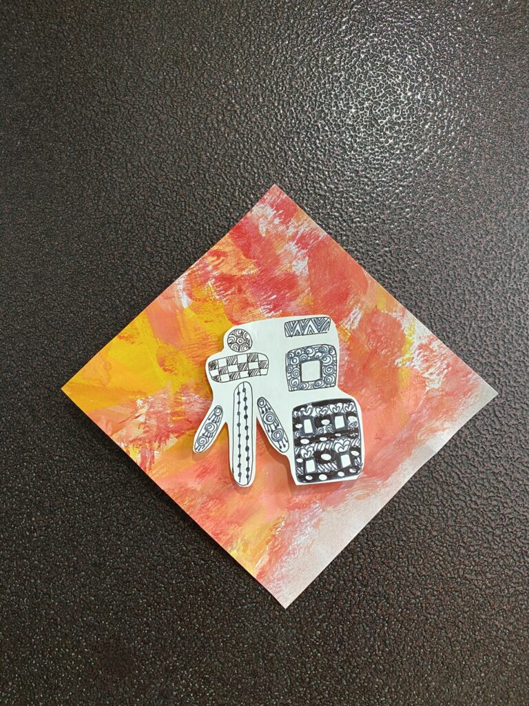 心得:今天看到這個新的企劃內心超激昂,覺得這…太厲害了啦!平時的我只會想買一買貼一貼就好,根本不會想到要和女兒一起互動!心動不如馬上行動,馬上做吧!和女兒先用水彩+繪兒樂顏料畫底色~她拿著水彩筆用力戳畫紙(汗顏)等午睡起來圖畫紙也乾了,就由媽媽來寫春聯~成品完成後很喜歡💕