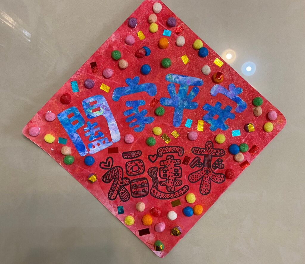分好幾天畫了幾張彩紙!直到昨天才把春聯完工!利用彩色膠帶、玉米黏土來裝飾。簡單又超美的大春聯!祝福自己也和大家平安健康、闔家平安福運來!