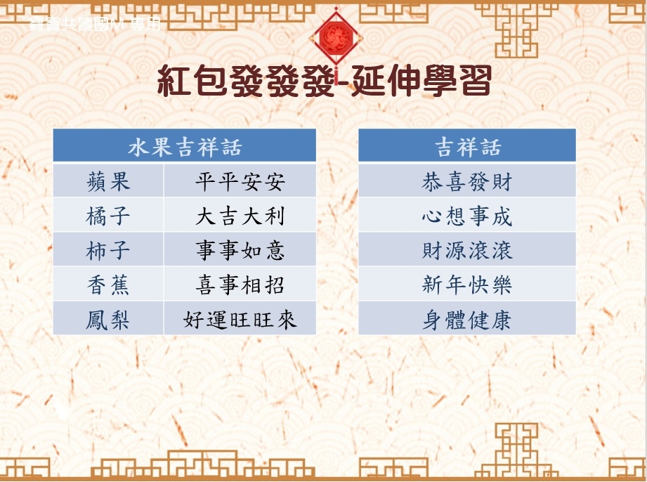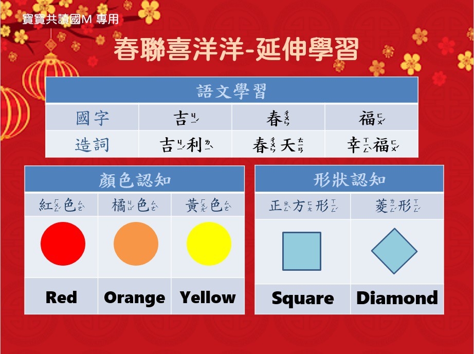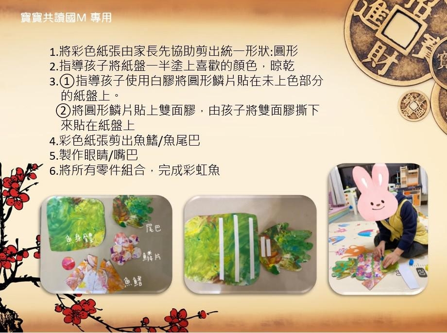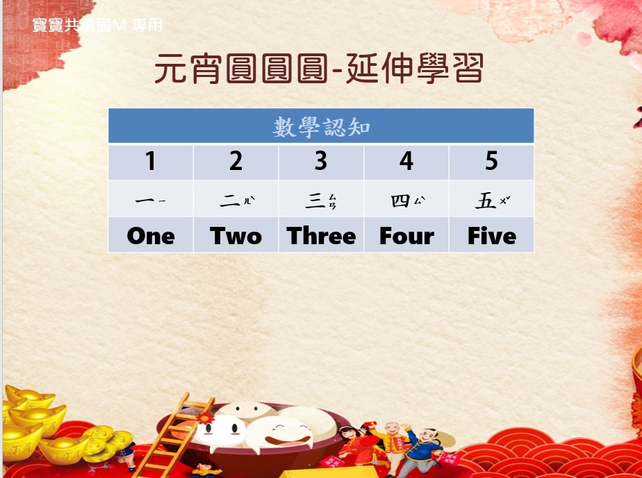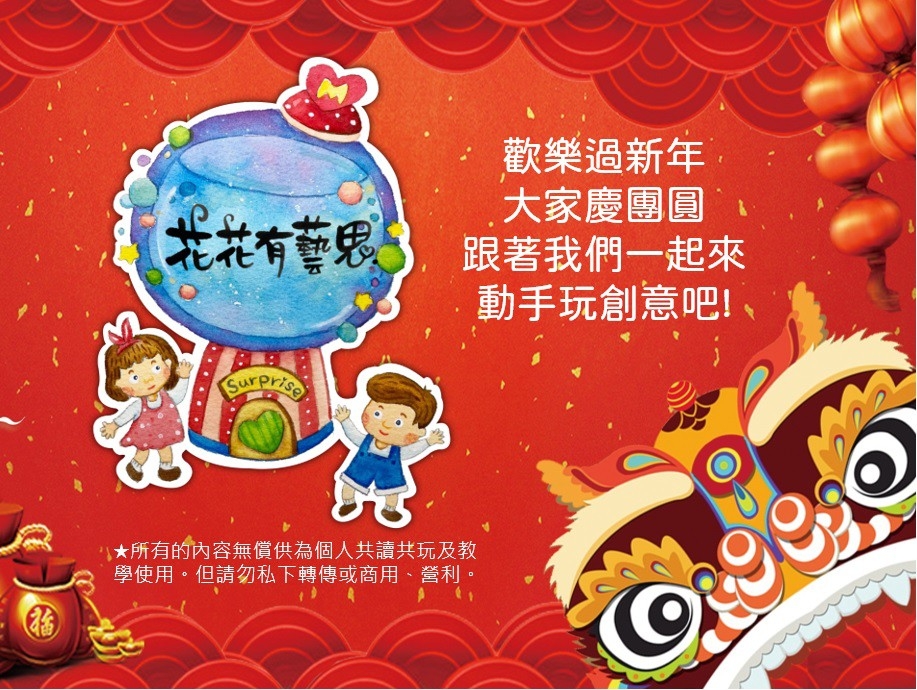 過年期間滿滿的歡樂氣氛,深深印在我的腦海裡。曾幾何時,我們忘了年味是團圓的記憶,是讓人最眷戀的味道。在這裡先感謝花花有藝思團員們努力發想及設計這麼豐富的一系列創作活動及延伸教材,讓我們的孩子進行繪本閱讀之外,也能動手玩創作,更能學習到語文和數學的認知唷!