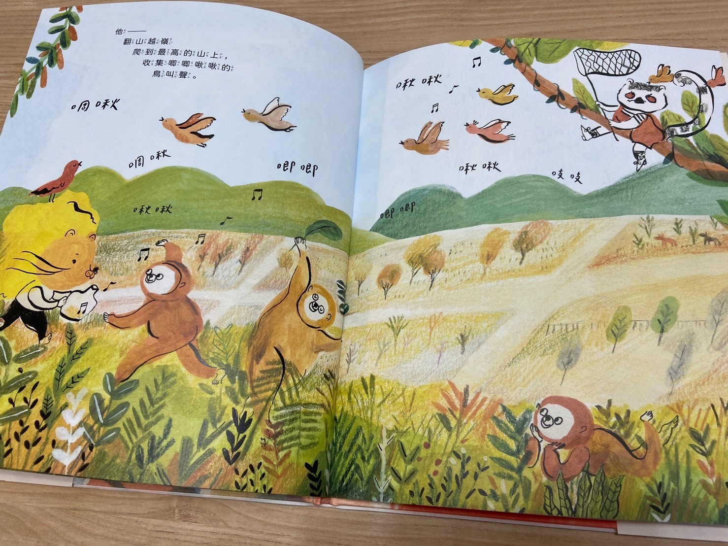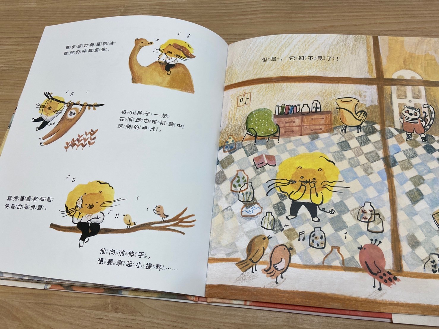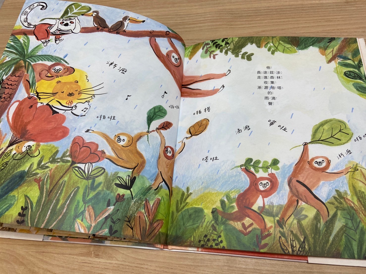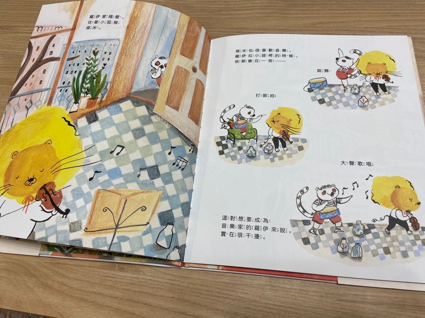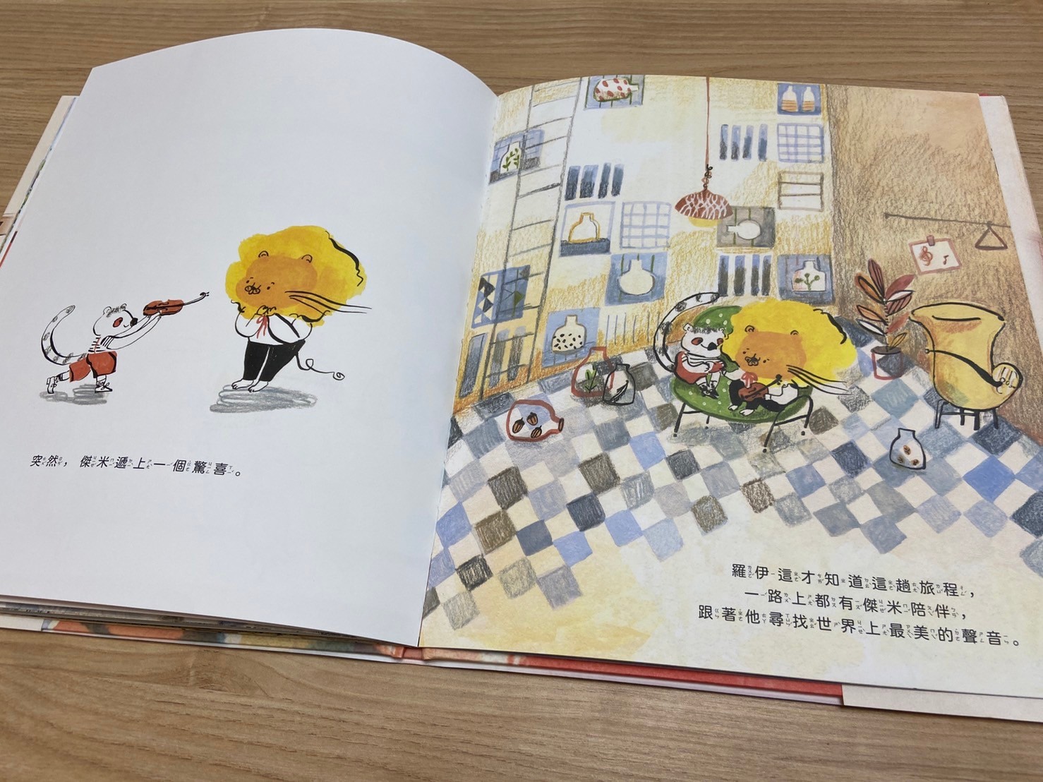 章魚燒第一次看的時候,有注意到狐猴傑米跟著小獅子羅伊一起出門,每一頁都可以找找看傑米和羅伊,還可以觀察傑米在做什麼,旅途中也有很多狀聲詞的應用,彷彿也聽得到聲音,很有趣。
