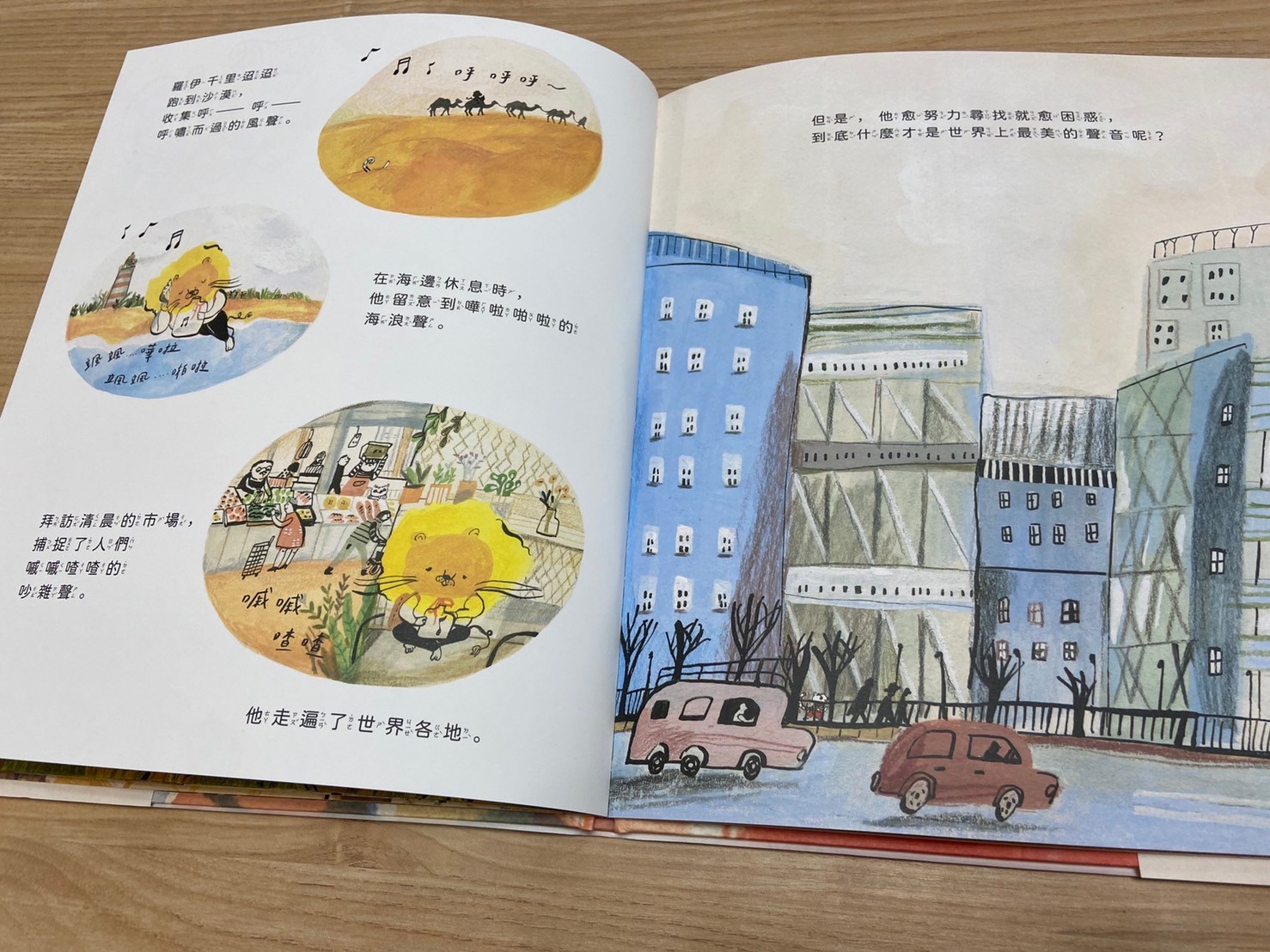 內容是在說一隻小獅子羅伊到各地找尋世界上最美麗的聲音,尋找途中越來越迷惘,最後他決定回家…