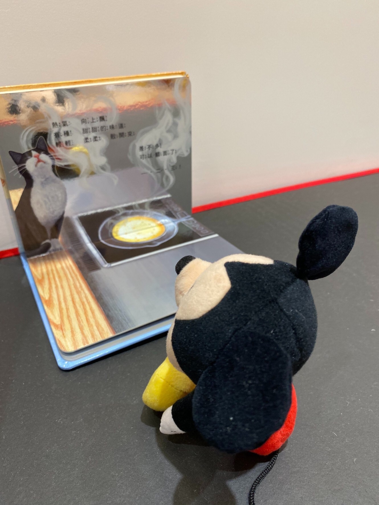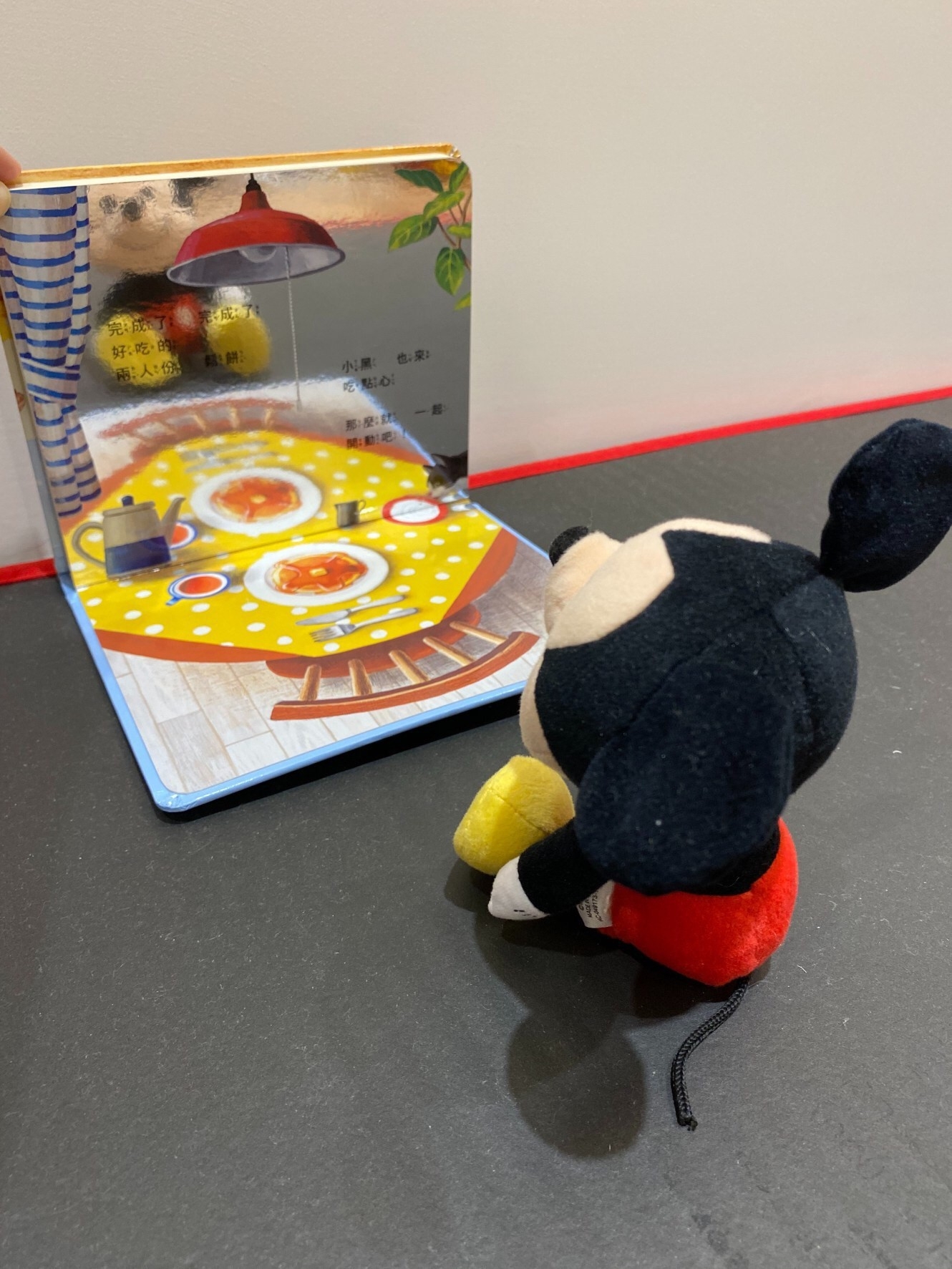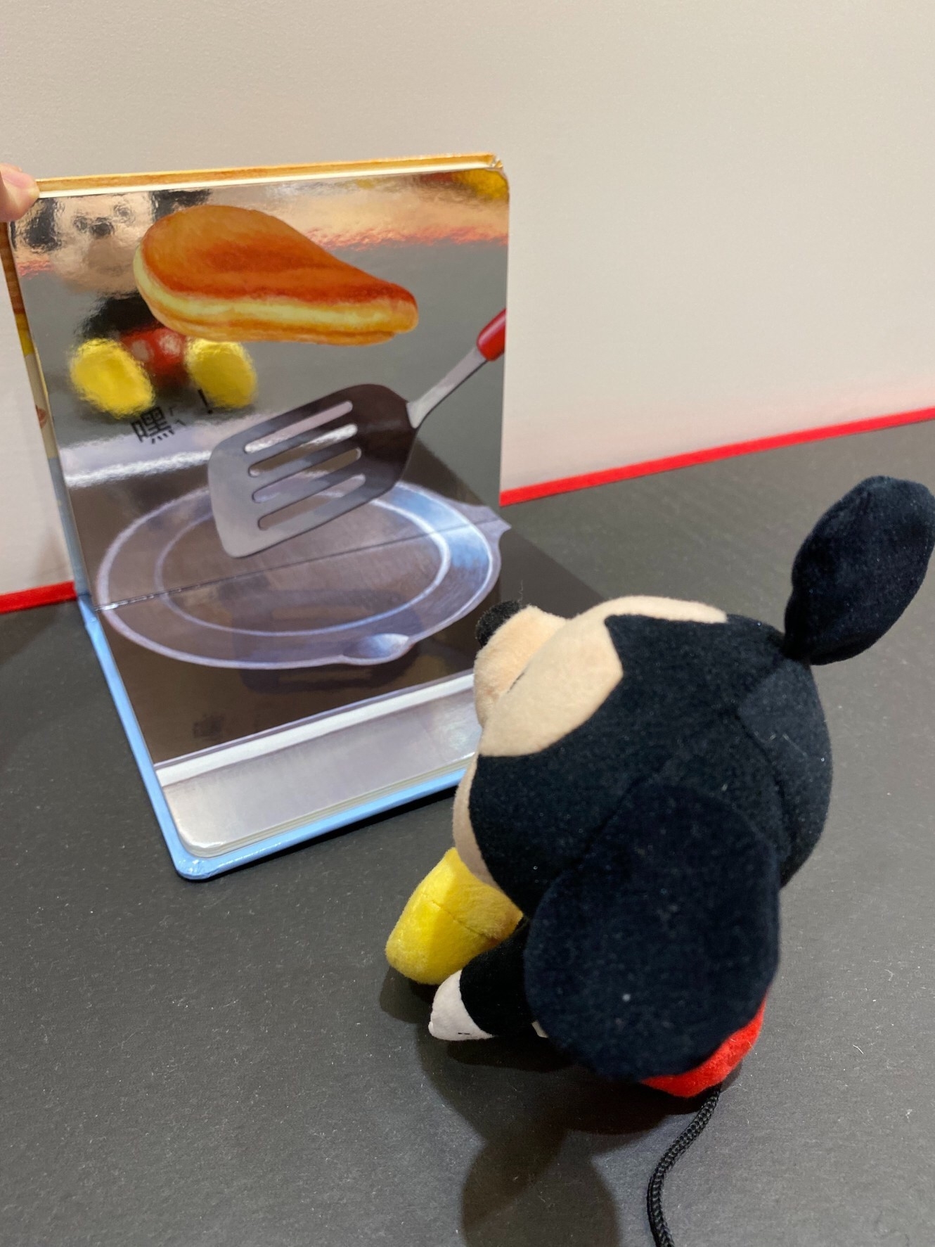 硬頁的鏡面繪本。亮面的材質,質感很好。將繪本前後頁呈90度角給小孩看,可以在書中看到自己,就像自己在做點心,非常吸引小孩的注意力,每次看這本都笑得很開心。