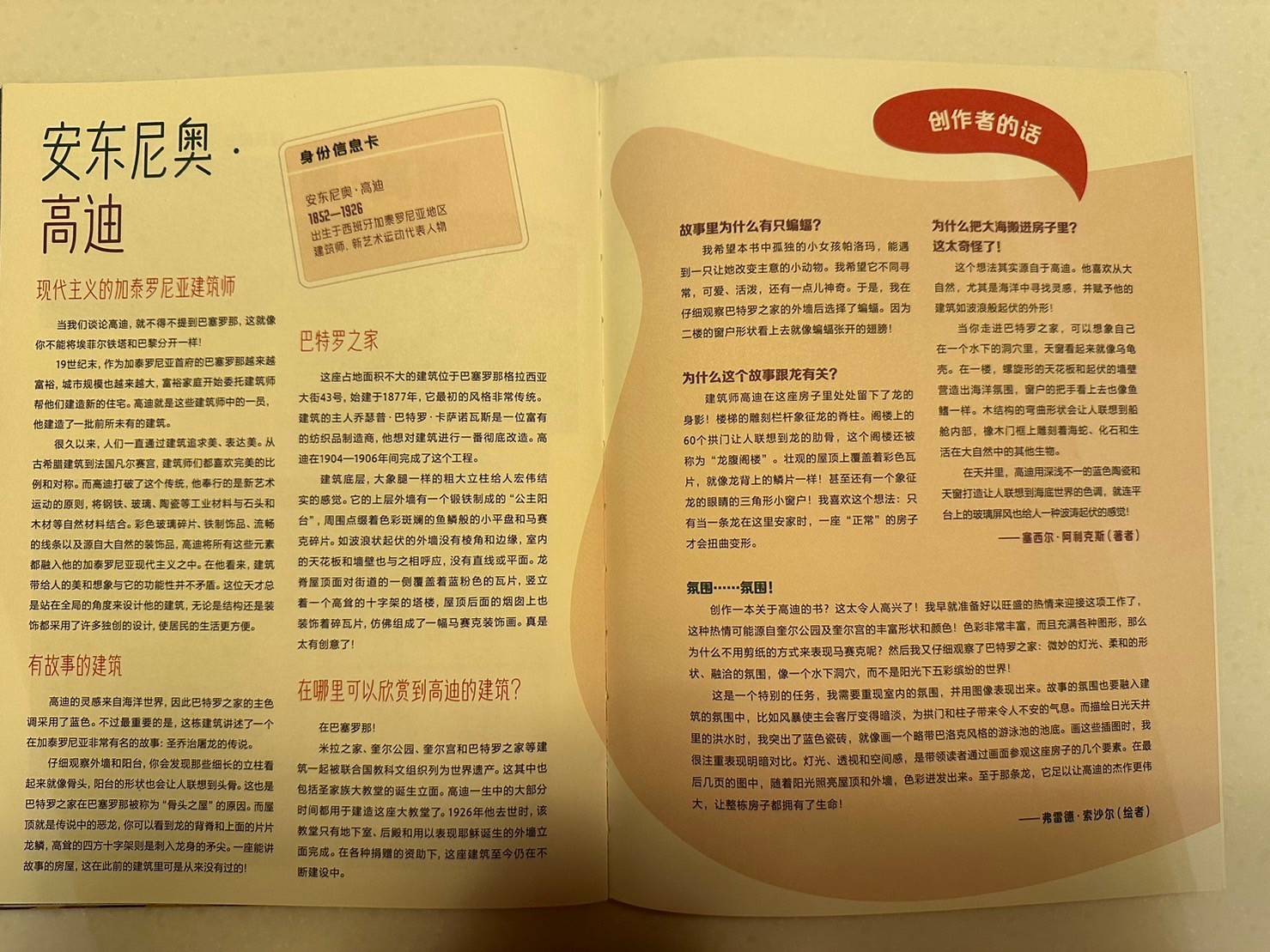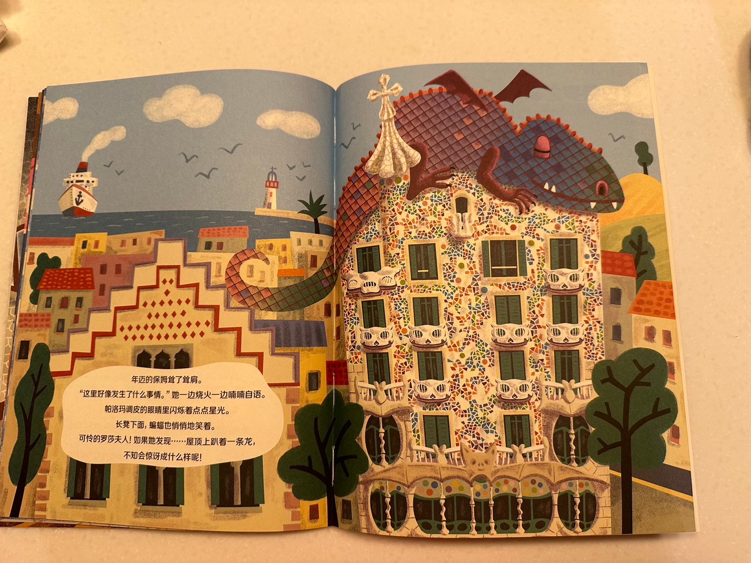 心得:這套我也買一段時間,之前的你好藝術系列搭配青林音檔很棒!這套我也很喜歡!!雖然也是簡體字,但內容媽媽跟小孩都很喜歡,藉著故事認識藝術,他的範圍不僅僅只有畫作,也有雕塑甚至是建築!我們目前看了6-7本,今天因為我跟莎莎很喜歡這本,特別來分享!在看這本書之前我都沒去看他要介紹什麼作品,就是單純欣賞故事、今天這本講一個小女孩碰到了一條龍的故事,沒想到是要介紹這棟美麗的建築物,看完書後我找了影片給莎莎看,介紹房子外觀跟裡面!真的超美的建築物!出門的時候莎莎跟我說「媽媽我們也可以去看一下那個房子嗎🥹」孩子…西班牙有點遠啊!