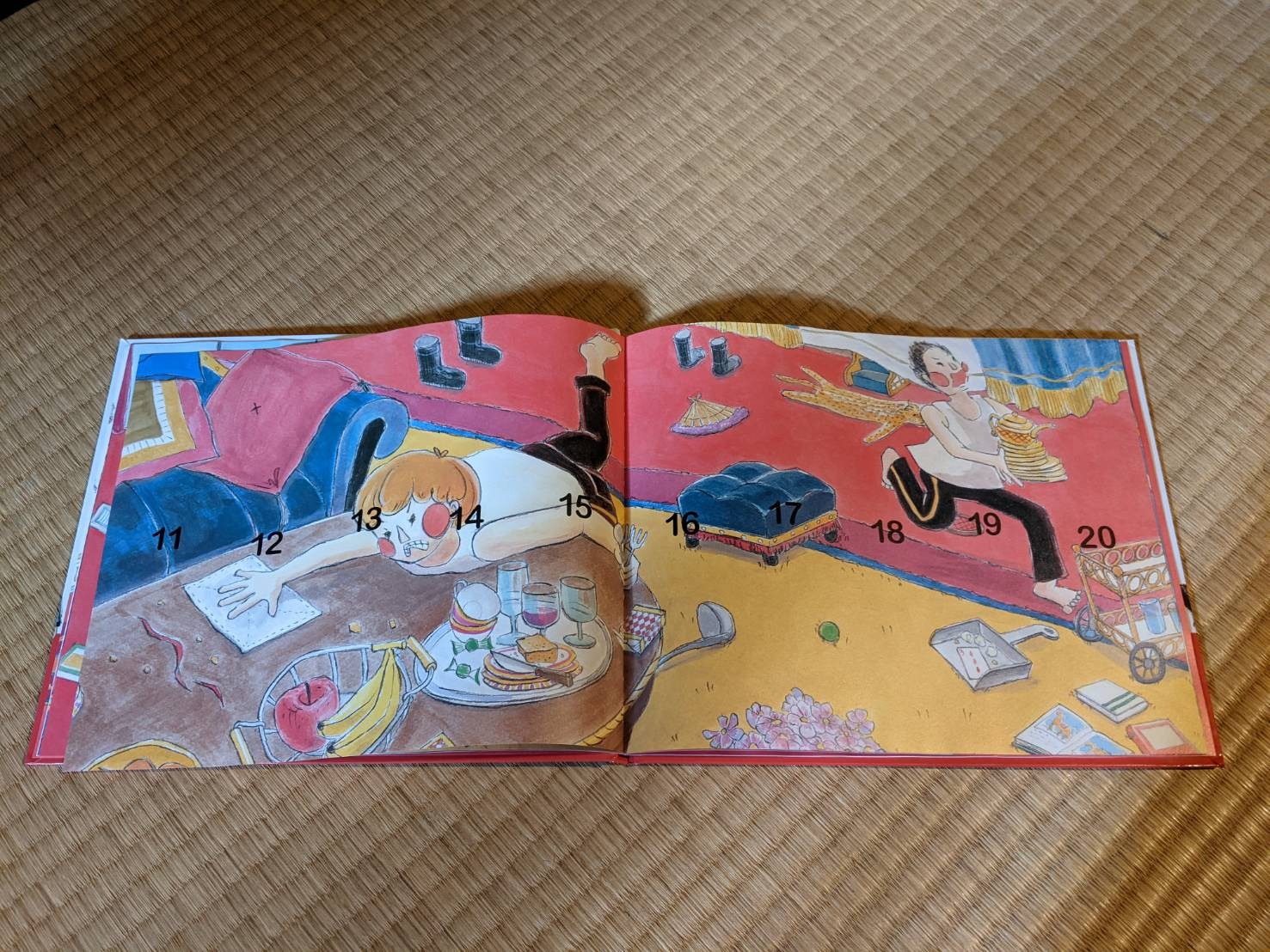 文字不多,但圖片搭配著數字很生動。一歲半的時候帶女兒看過,她還沒什麼反應,現在快兩歲了再重新翻出來,發現剛好可以拿來練習認識數字。