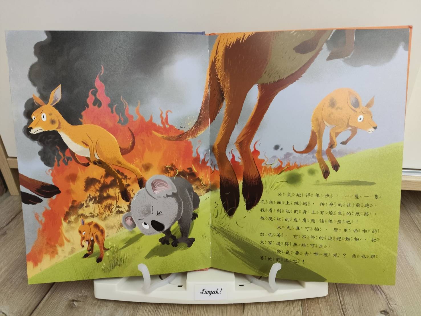 像是對你說一百次謝謝,就是說到澳洲森林大火,無尾熊及許多動物逃難與受傷的故事,女兒看完都還會跟我說:森林大火好恐怖,無尾熊好可憐。