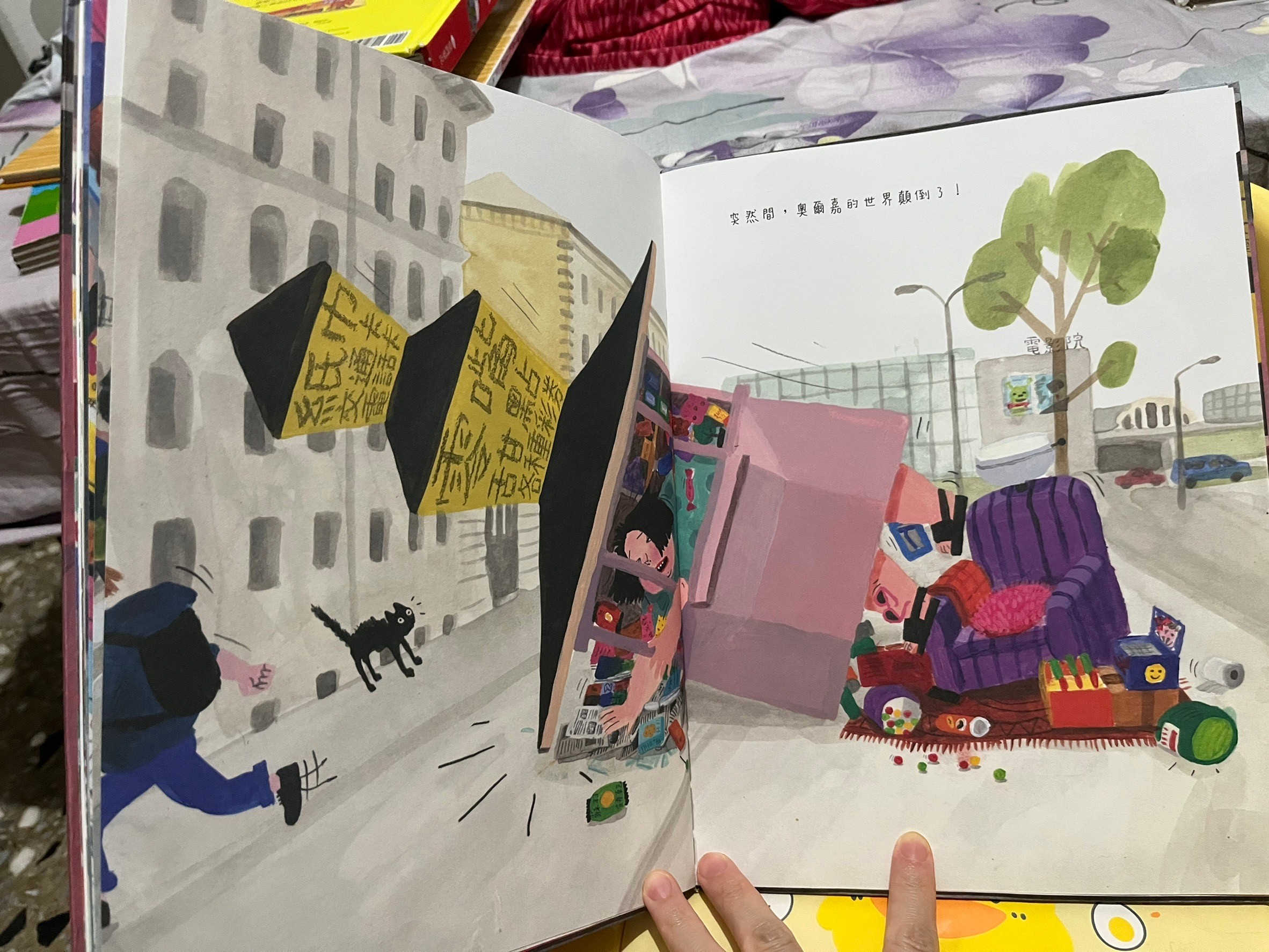 我先讀了繪本才看動畫,看了動畫覺得這個故事更有趣,更生動了!也更知道要怎麼講給孩子聽了!今天早上講給強強聽的時候,我演了主角奧爾嘉連同小報亭一起跌倒,吃力的撿起地上的掉落的商品,突然發現自己可以把小報亭抬起來,然後就抬著小報亭去散步的樣子。強強看了我的演出後,超喜歡,連續要我講了三次,哈哈!