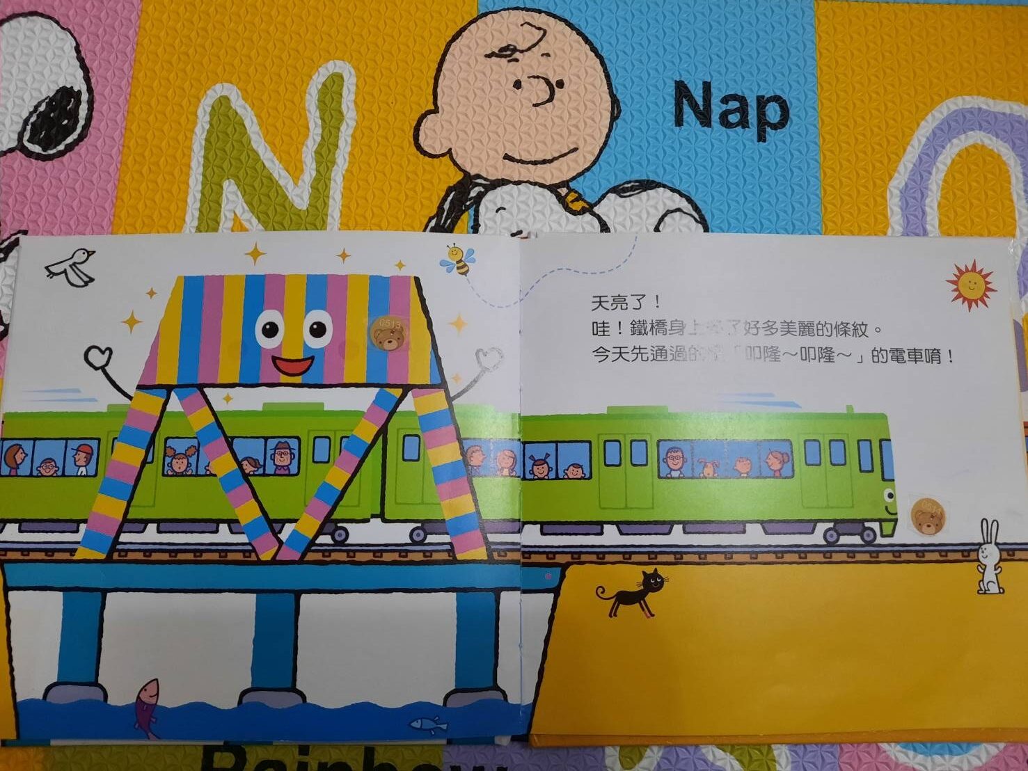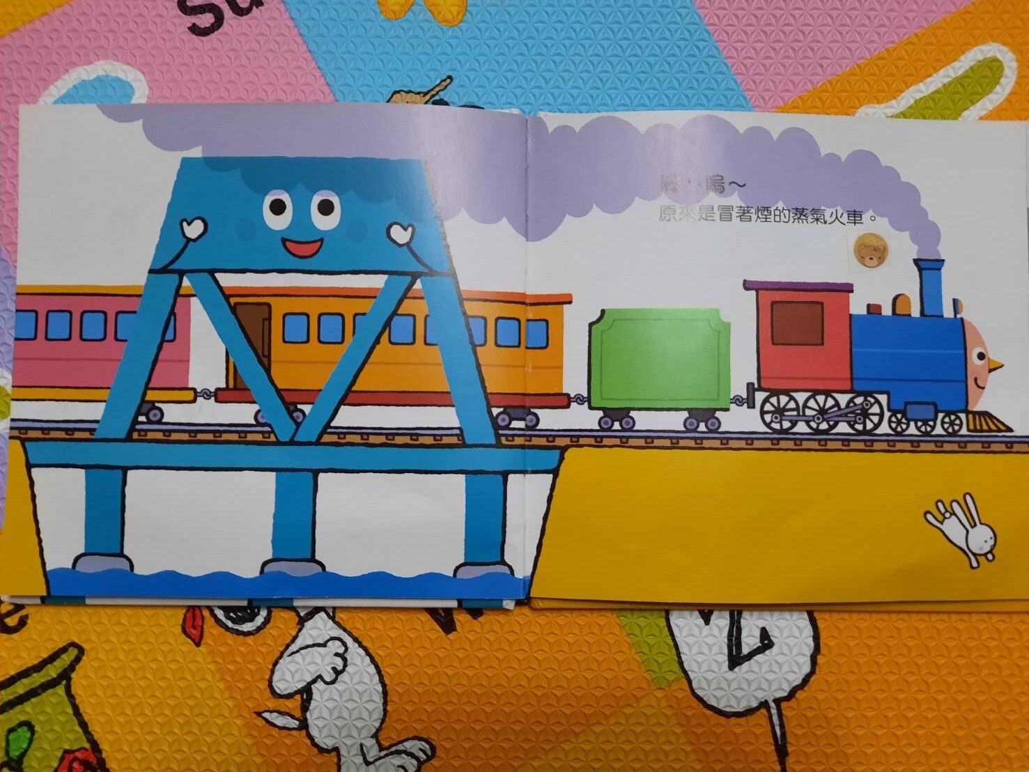 喜歡這本書對答呼應,二寶會因為我發出各種火車的聲音而哈哈大笑,有時也會跟著發出嗚的聲音,還會因我做了點讀書,看到我拿這本時 會主動拿筆來點,雖然沒有一次點準到,但卻知道要拿筆來 就好欣慰