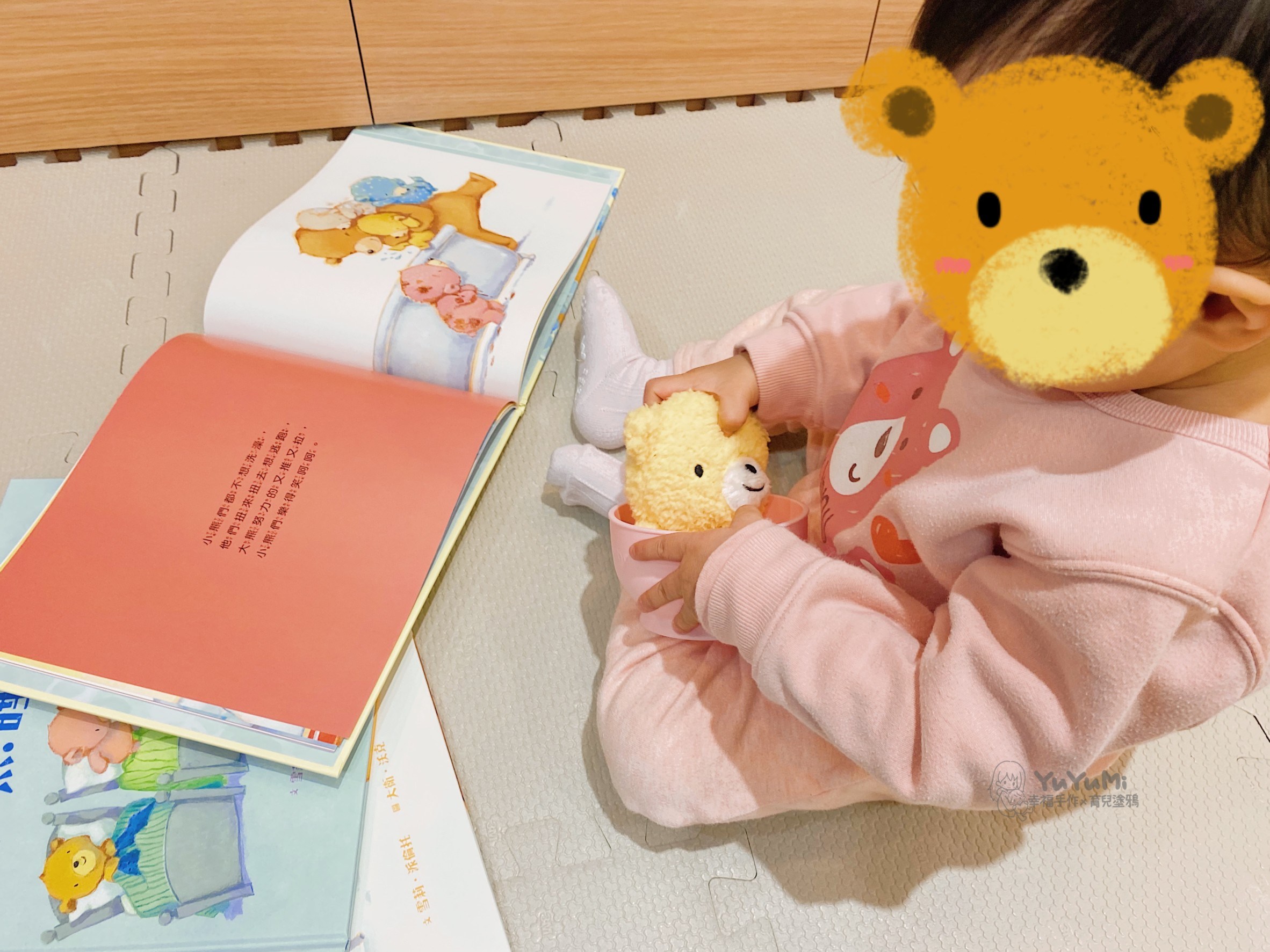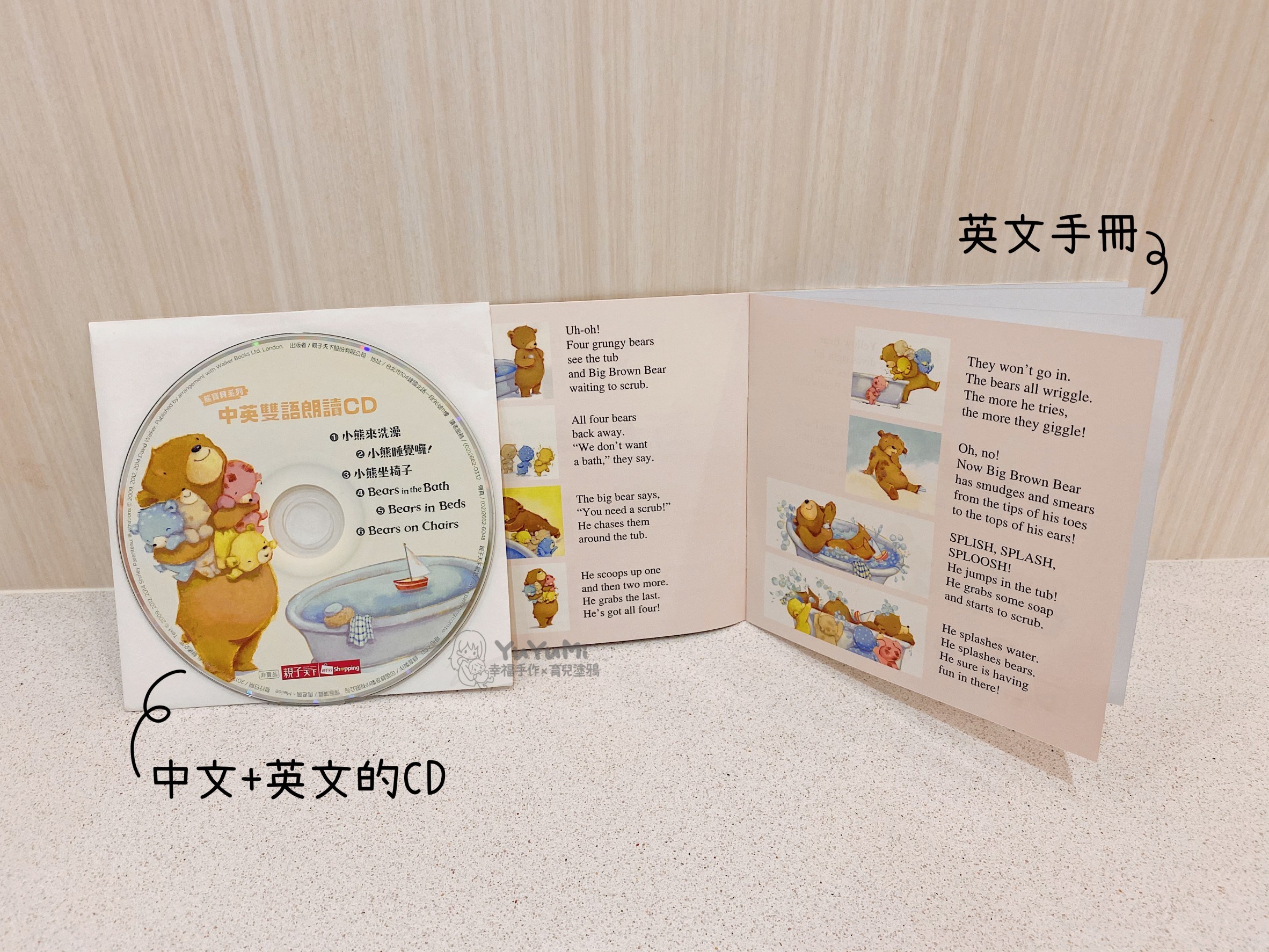 插圖非常可愛,色調溫暖,用溫馨的文字讓孩子在故事中學習生活常規、勇敢面對恐懼及樂於分享。中英文雙語CD的品質不錯,也有附英文版的故事手冊讓家長使用。共讀時可邊用小熊玩偶進行角色扮演,讓孩子更融入故事情境中。