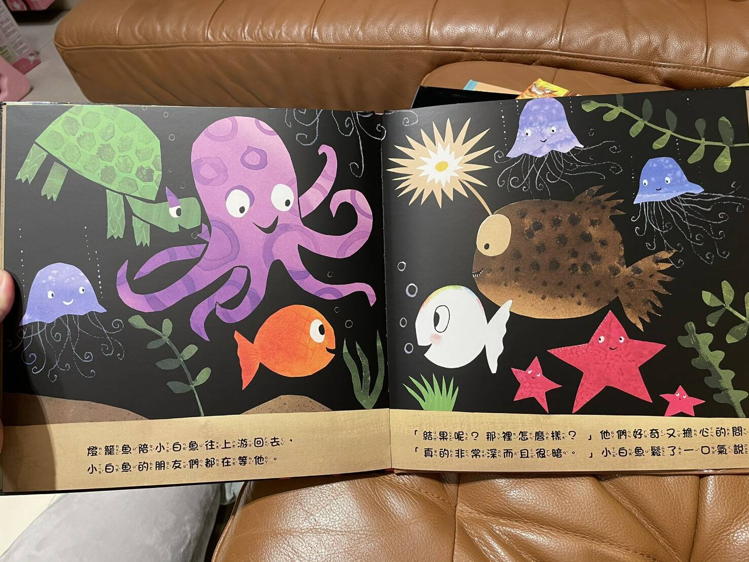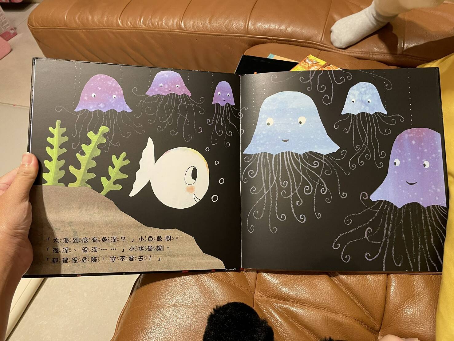 這本是訴說小白魚不管其他人的警告跟建議仍然要到深海玩的故事
