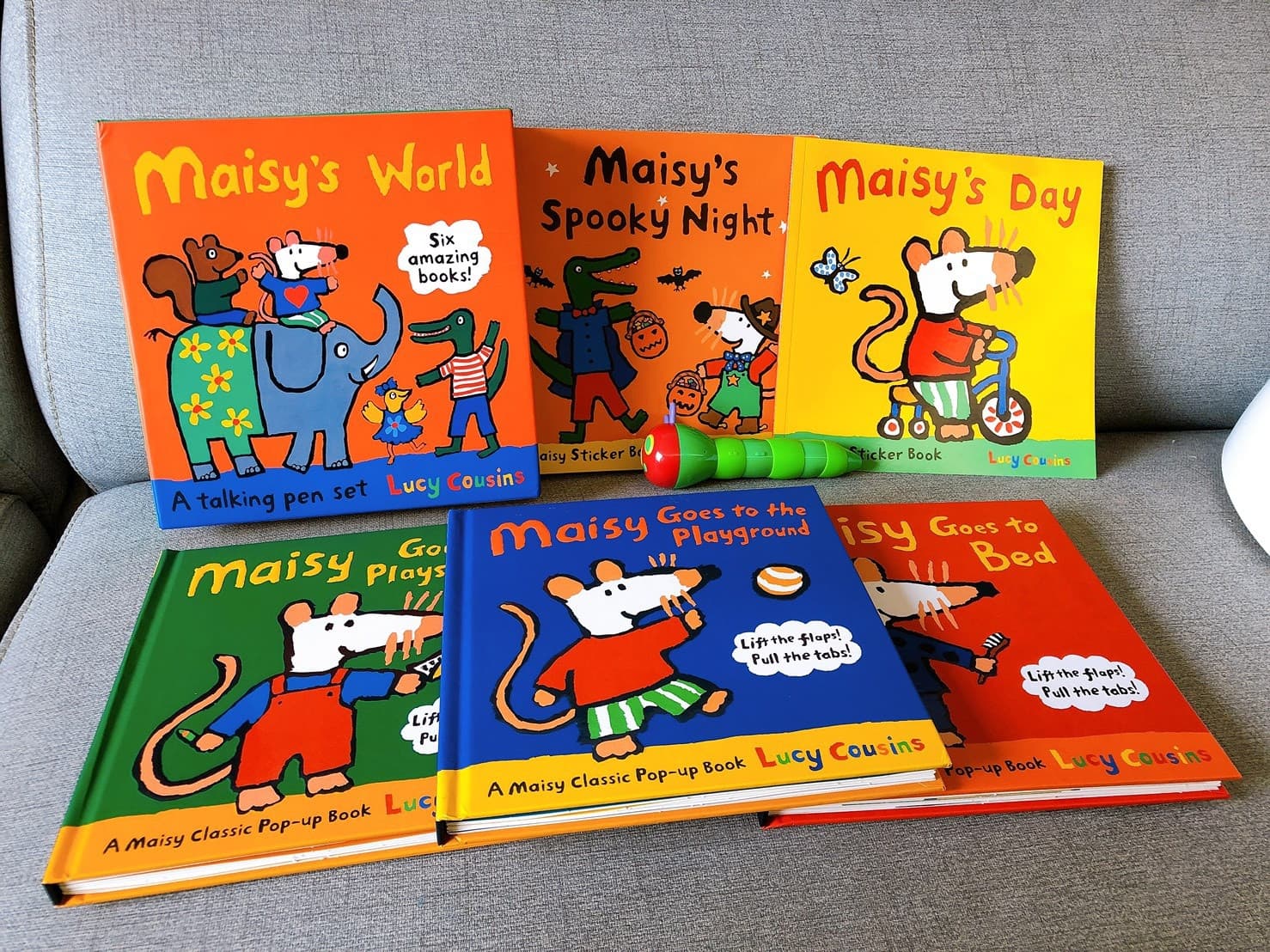這套有分藍盒、橙盒,每一盒有3本操作3本貼紙書,共6本。操作書我覺得2歲剛好,我自己覺得操作有些會卡卡的,(((收到書自己先把機關玩幾遍)))順了再給小孩試~操作書跟繪本不同,有一套即可!