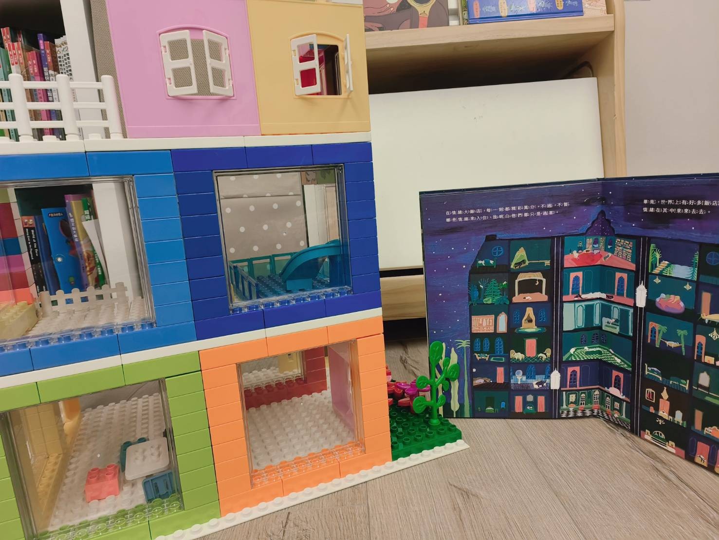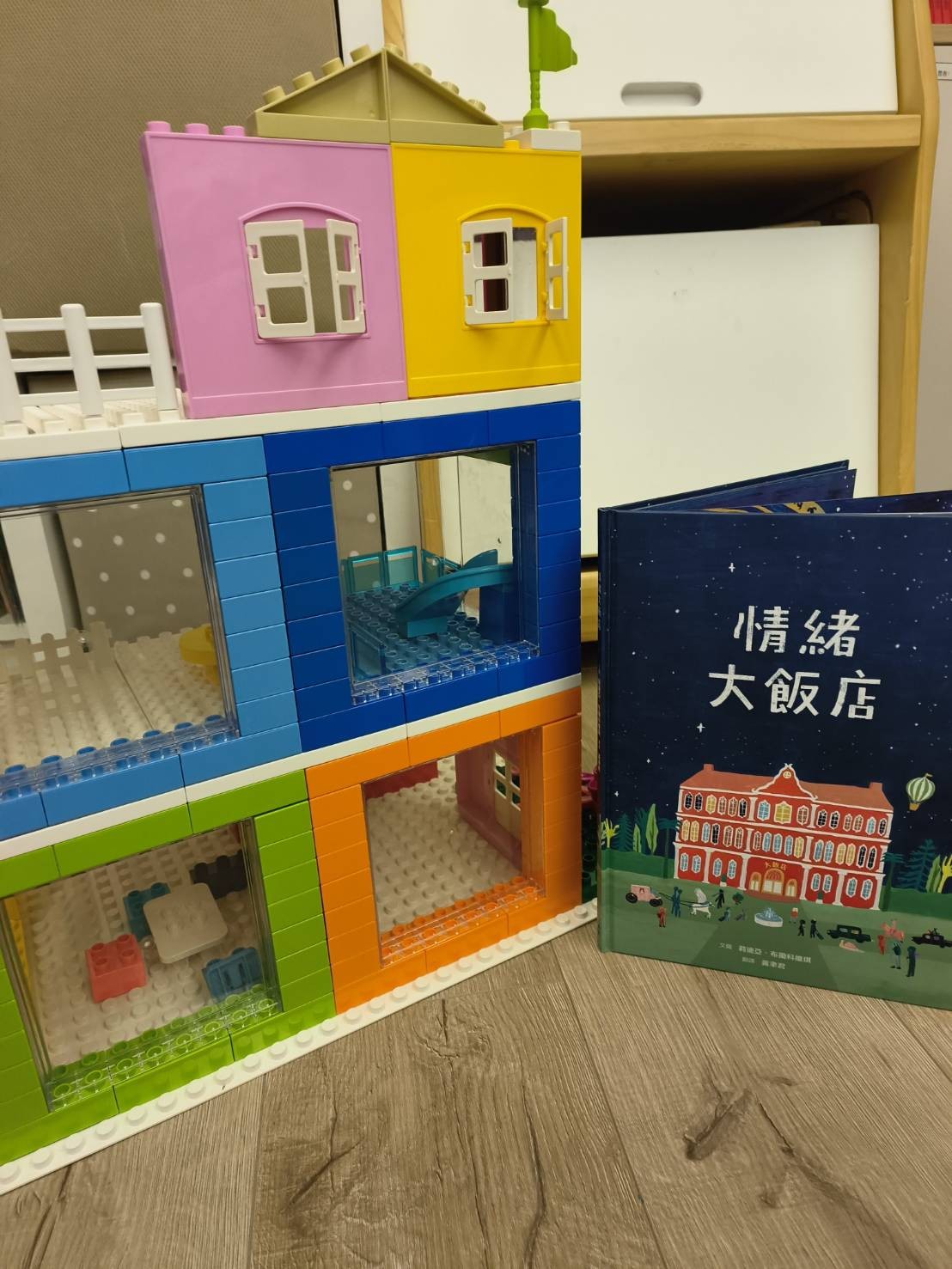 藉此我也用家裡的樂高來做了一個情緒大飯店(有混用正版和祖國版樂高)可以讓孩子更有具體化又可以扮家家酒繪本中的故事,分享給大家!