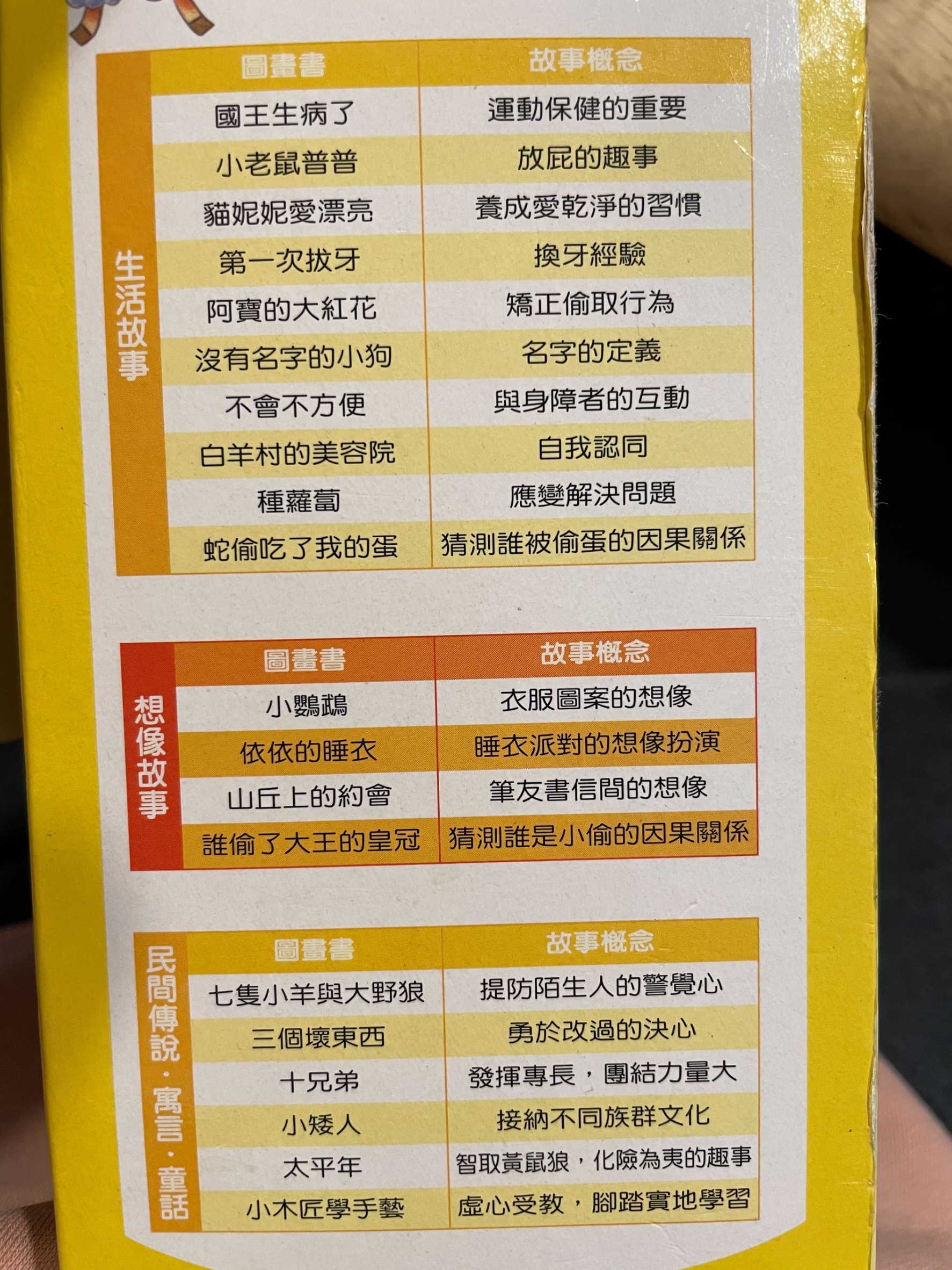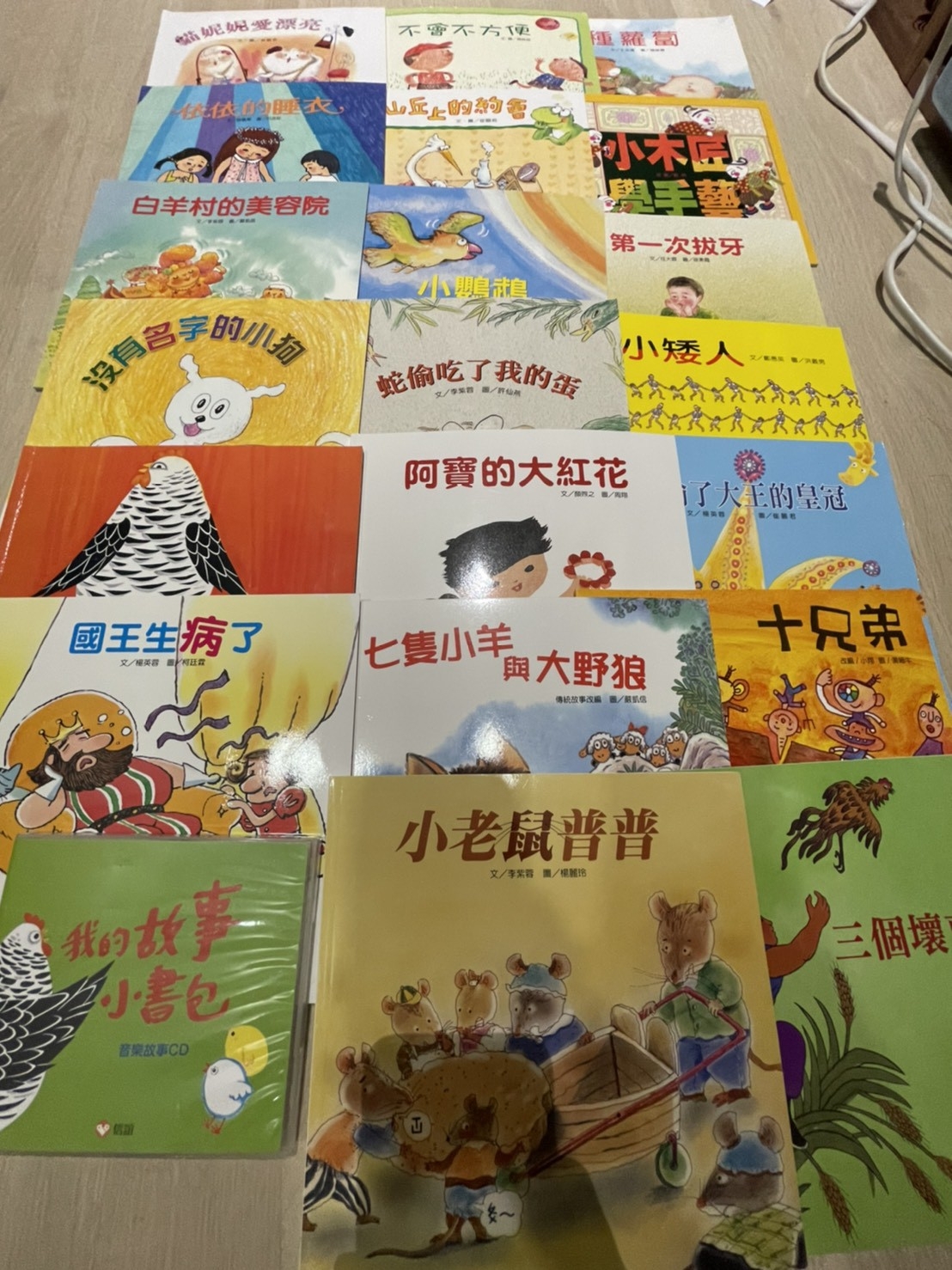 這系列很多有20本+4CD,每本都有對應的故事音檔,很超值。每本的繪畫方式及畫風都很不一樣,水彩、蠟筆、彩色筆、漫畫、寫實、線條,應有盡有。連故事特性也都蠻不相同的,有幾本是傳統故事(周處除三害、黃鼠狼給雞拜年、大野狼等),其他還有一些天馬行空及生活方面的,如果小孩大一點的讀故事之餘還能介紹不同畫風很棒啊!晴晴2歲有一起共讀幾本比較淺顯的,蠻買單都有看到最後喔!