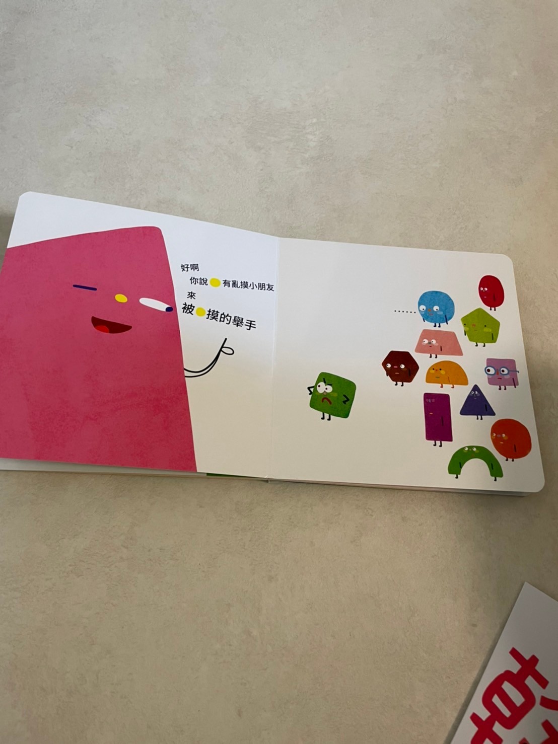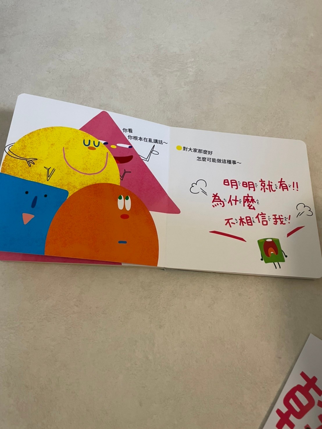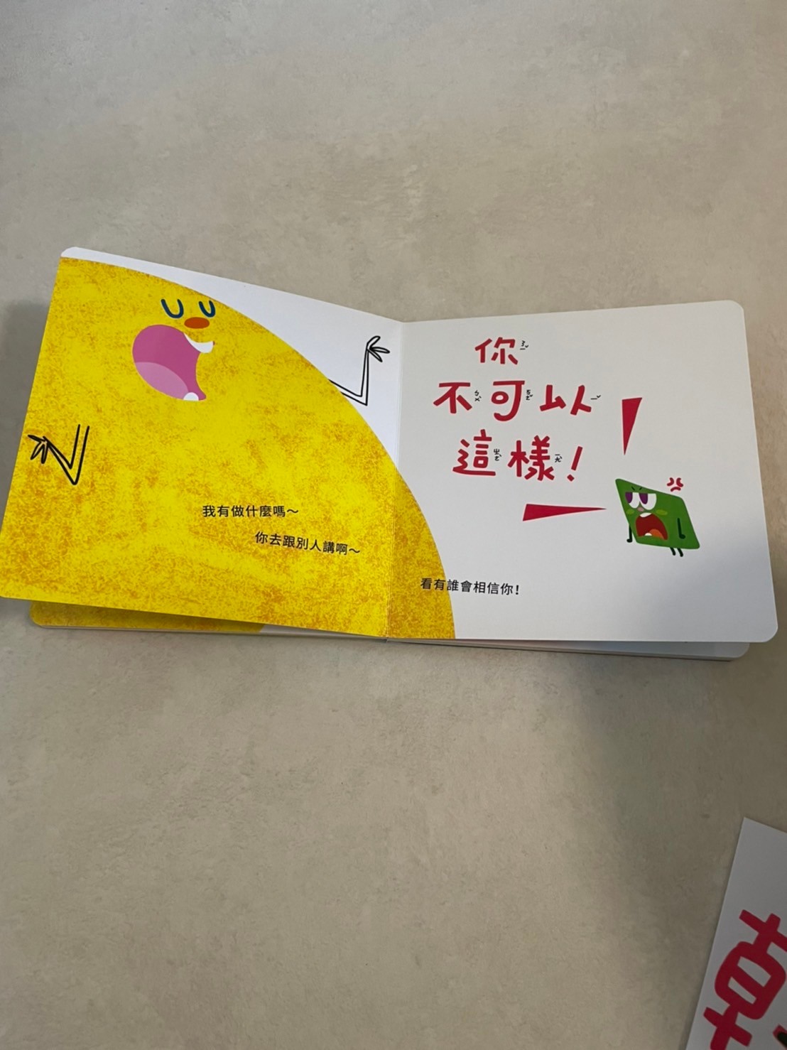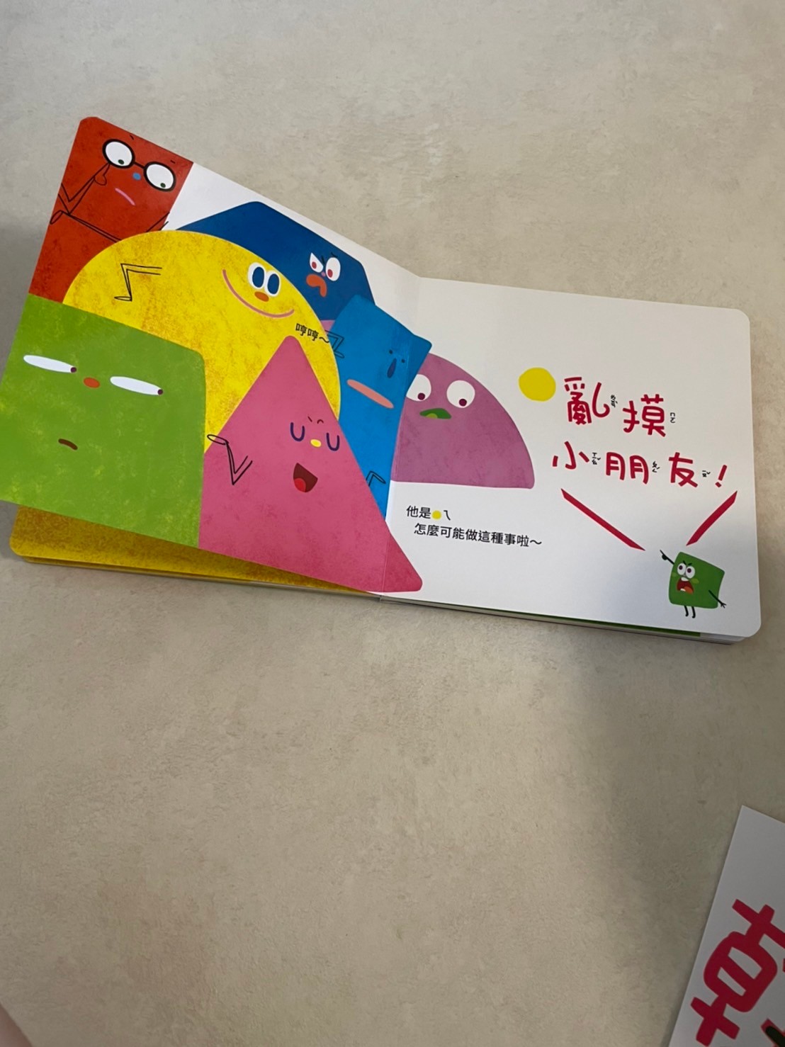 是美媽送的一本很棒的書,第一次媽媽沒有認真看還沒有看太懂,唸給莎莎聽之後覺得是一本很不錯的內容,是作者自費出版的書,故事是大黃球亂摸小朋友被小綠方塊看到了,他告訴大人大黃球亂摸小朋友,但大人都不相信他,甚至大人問小朋友有沒有被大黃球摸也沒有小朋友舉手說被亂摸,小綠方塊很生氣覺得沒有人相信他,但後來好多小朋友都哭著舉手表示他們被摸了。大人們這才恍然發現孩子們被侵犯了。作者用很淺顯的方式表達了孩子的心情,莎莎在看的過程跟我說小藍球哭哭了,問我他為什麼要哭,我說因為他不喜歡大黃球抱她,快三歲的莎莎感覺似懂非懂,講完這本我也順便講了一下秘密派對,告訴莎莎如果有人對他做出不舒服的行為他可以說不,也可以告訴學校老師跟爸爸媽媽。媽媽也常常告訴他生活中開心不開心的事情我們都可以分享,上週莎莎被小他近一歲的妹妹咬了,老師説莎莎很冷靜的告訴老師他被妹妹咬了,在還沒接莎莎的時候老師已告知被咬(有點慘的傷口😹)放學接莎莎的時候她立刻衝出來抱我說「妹妹咬我,我很傷心」委屈的小臉看著我,媽媽趕快鼓勵他「很棒!你願意分享你不喜歡的事情,而且你用說的,沒有打人」莎莎很開心地說「我有告訴媽媽,等一下我還要告訴爸爸😬保護自己很重要啊!希望孩子什麼事情都願意告訴我們