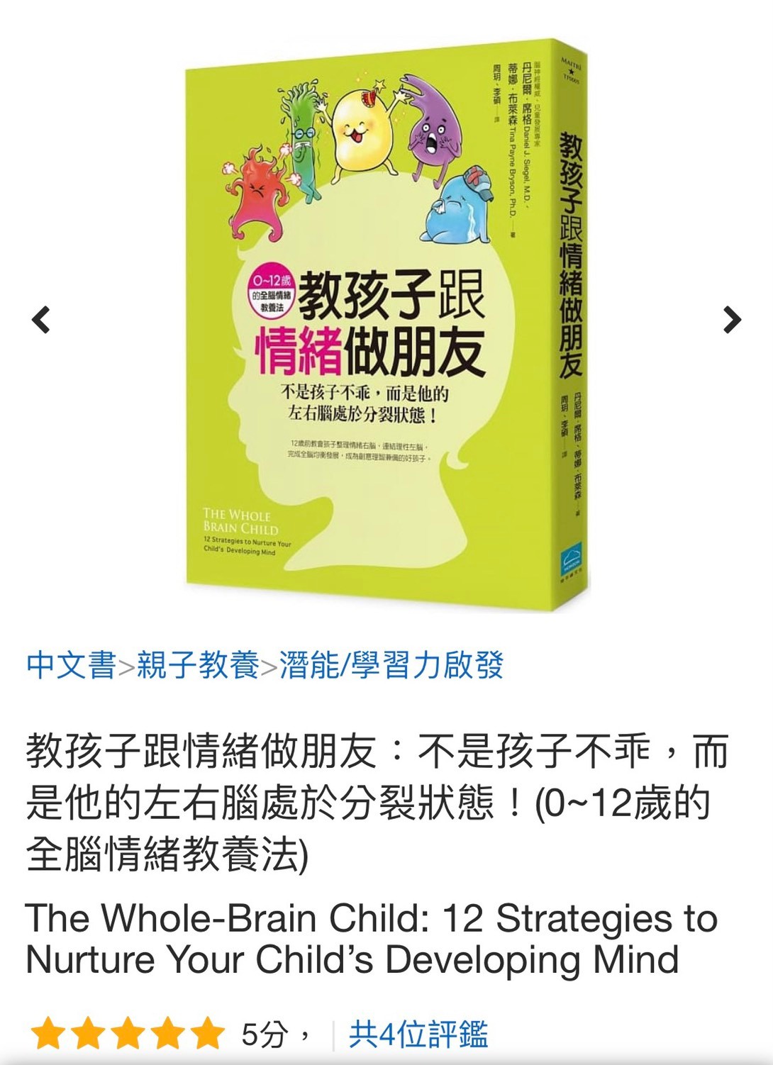 跟之前看過的正向教養書比起來,比起抽象的「溫柔而堅定」的概念,我覺得從腦科學來分析幼兒的行為,再針對情況來往全腦整合的方向處理,對我而言更適合!