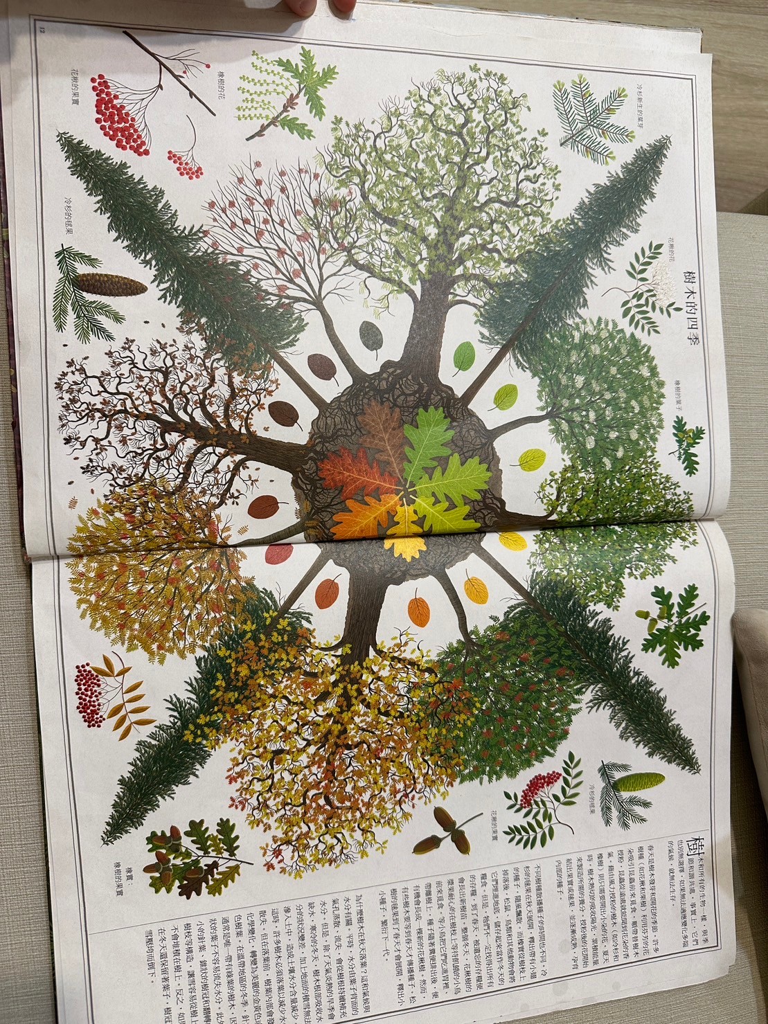 是一本關於樹木的百科書,畫家以傳神的畫風生動地呈現各種關於樹木的知識。大圖的設計非常吸引小孩,但有些家長可能會覺得文字有點小,需要自己簡化一下內容讓幼兒更容易理解。書中介紹了許多與樹木相關的生態和文化知識,非常有趣。通過閱讀這本書,讀者能更深入地了解樹木是多麼神奇且重要的存在,並對它們的獨特面貌有更深刻的理解。另外我特地查了這個畫家,同系列還有一本”蜜蜂”,我已經手刀預約圖書館的書了!!