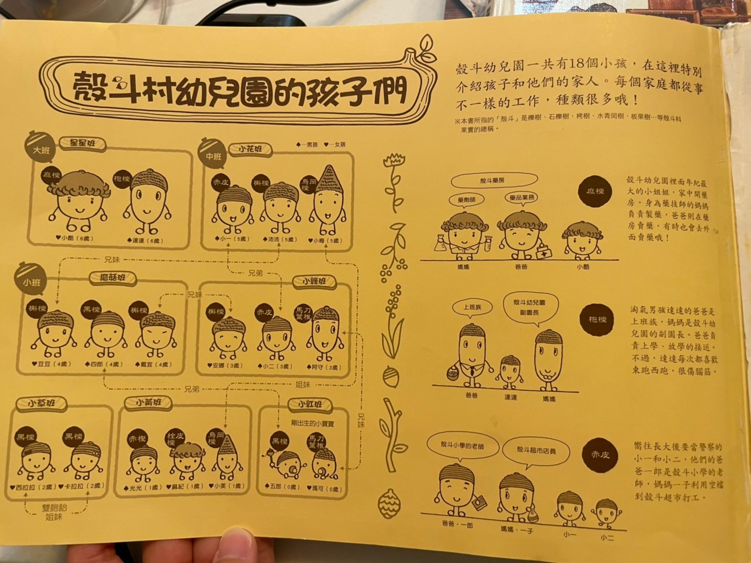 前陣子群組美媽在燒日文版殼斗村,剛好阿姆開團,但在還沒接觸下覺得一本書要500多也太貴了吧!但因為從來沒看過這套絕版書,也沒動念頭想買,不過偶然在國資圖竟然看到幼兒園這本,立刻借回家跟莎莎一起看,幼兒園這本好推薦要去學校上課的孩子,裡面的小殼斗都超可愛,細節很多,內容也很棒,故事劇情是幼兒園小朋友要開店,所有孩子為了開店卯足了勁,我覺得就是生活化的一本書,也有小朋友上學要跟爸爸媽媽分開哭哭,做勞作也有孩子為了做不好傷心,莎莎都會問他怎麼哭哭,像看到小朋友上學哭哭,莎莎問我為什麼,我就說有些小朋友和爸爸媽媽分開會有點傷心啊,莎莎就回我「可是學校也很好玩呀」媽媽:「對啊學校很好玩,但莎莎有時候進學校也會說不要媽媽走,但其實學校很好玩對嗎?」莎莎若有所思說「對啊」最近確實比較少拉著媽媽不要走(有相關嗎)