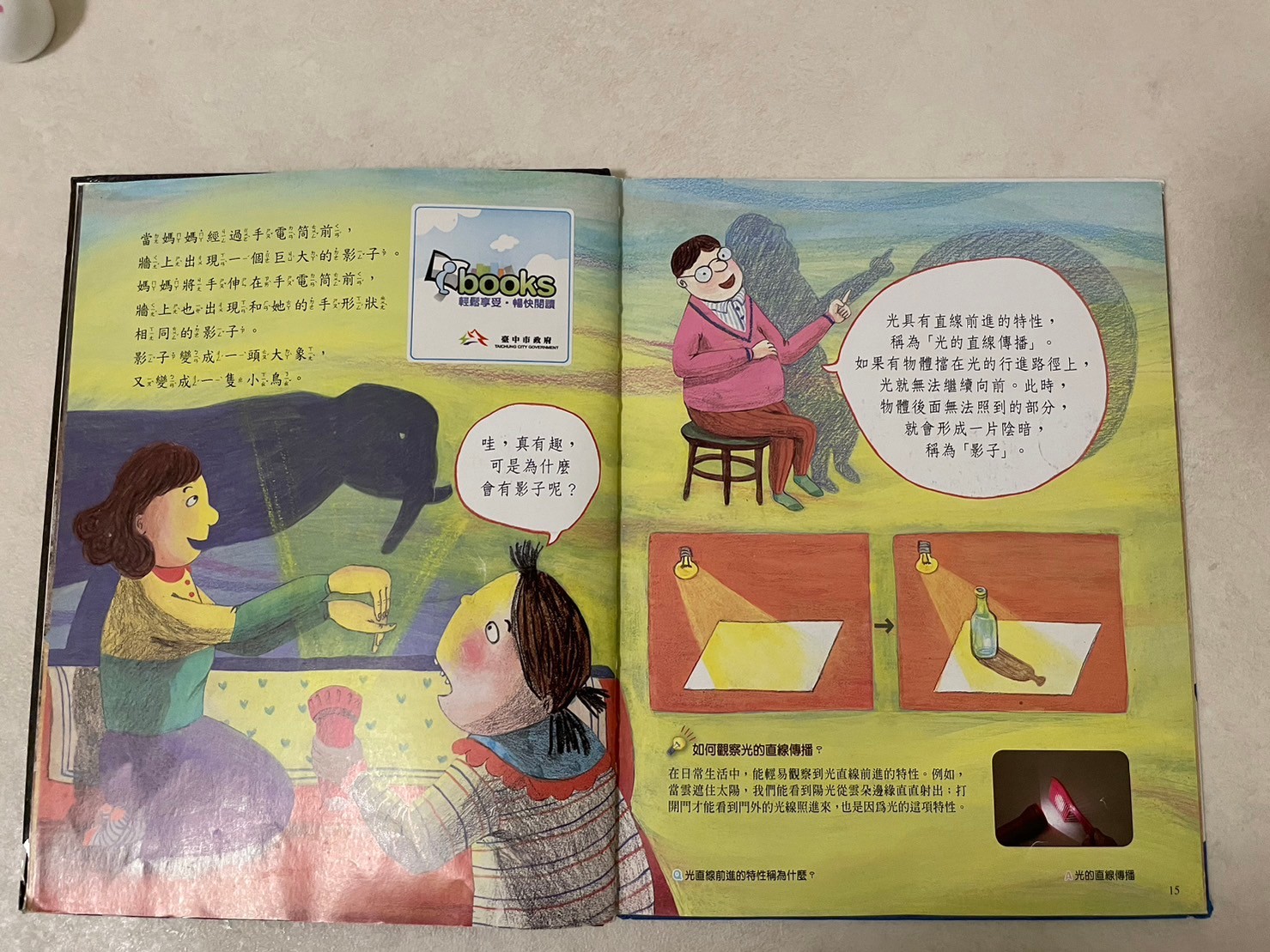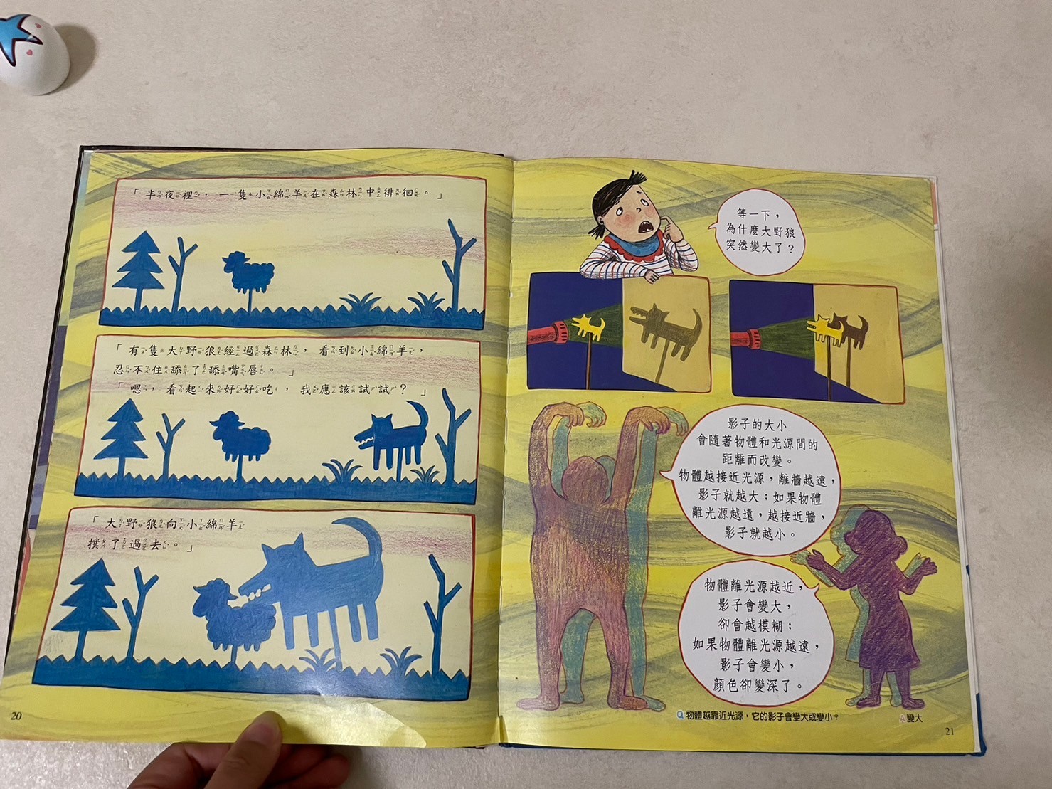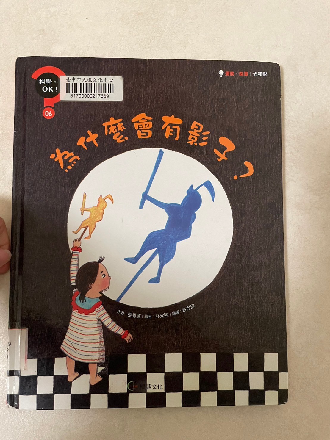 心得:這是一套科學書籍,在書展上聽了介紹覺得很不錯,發現圖書館也有幾乎整套書,就借了幾本回家看看,這本影子我覺得蠻容易理解的,會選影子是因為莎莎有時候都會說他不要影子😂一直叫影子不要跟著他,藉著書中的故事讓莎莎明白影子的形成跟光密不可分,也藉機認識了皮影戲,明白月亮跟地球還有太陽之間的影子關係,地球儀也派上用場👍