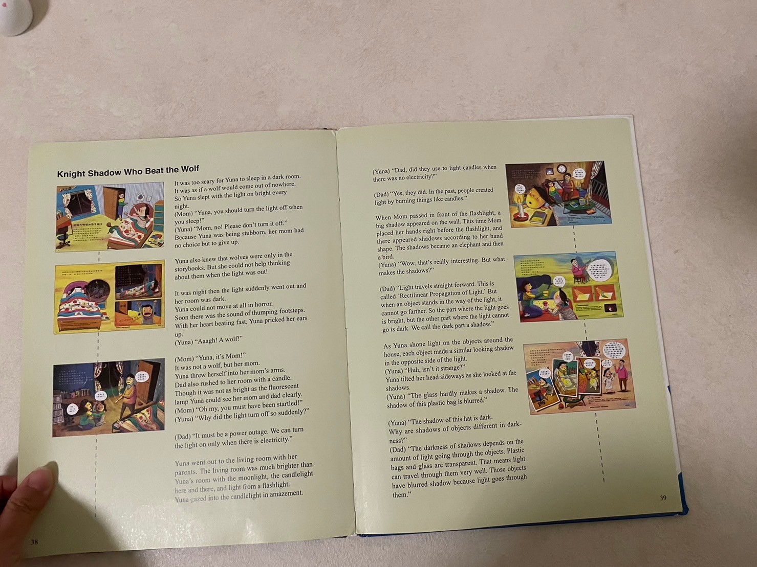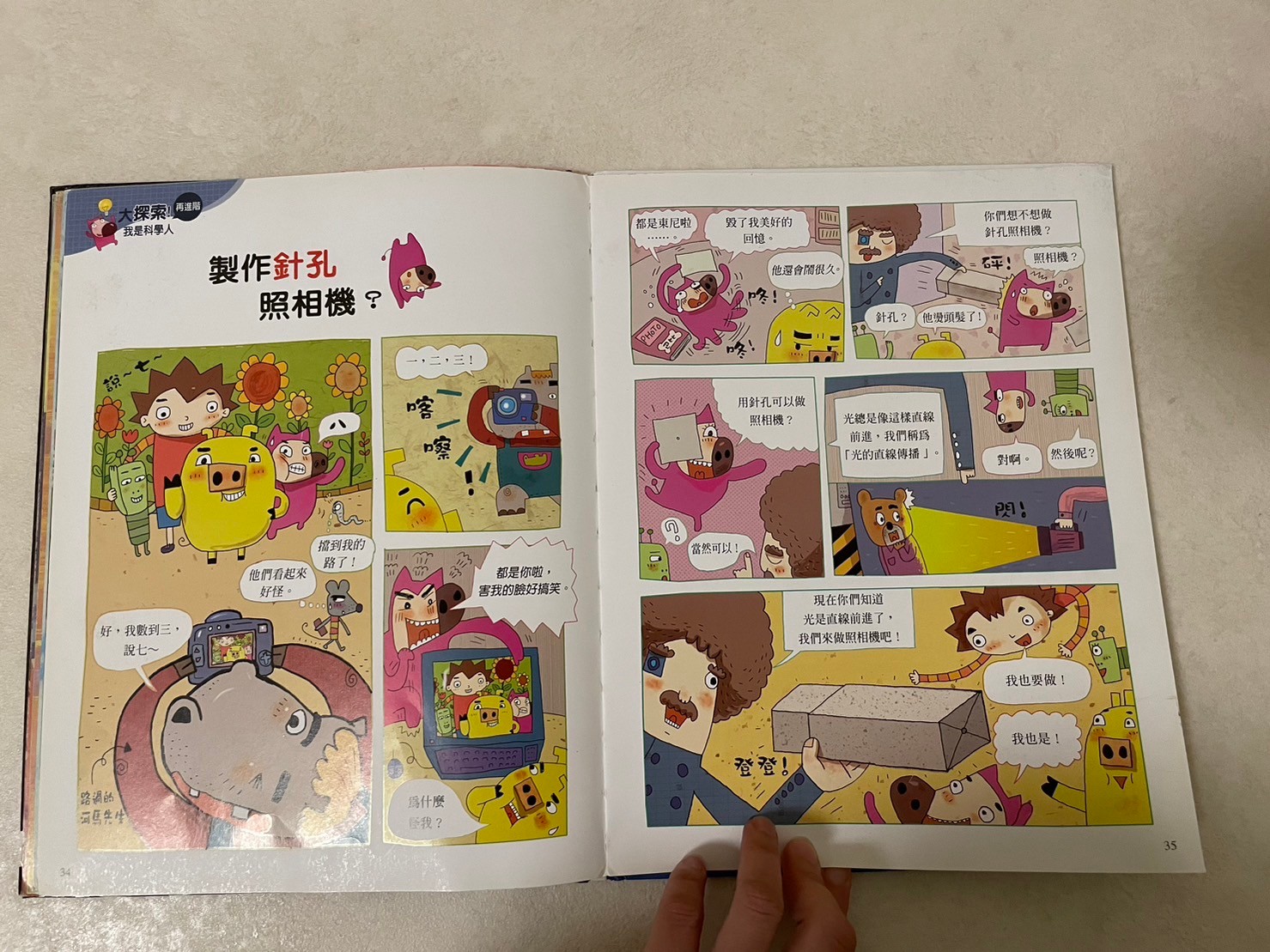 這套書都是先一個故事,然後衍生想帶入的知識,有些故事我覺得很不錯,還有一本熱傳導莎莎也很喜歡,書展中介紹的聲音那本也很棒(可惜我這邊圖書館沒有)後面帶入給爸爸媽媽看的知識延伸,有的還會伴隨一套小實驗,最後面都是雙語,可以挑孩子喜歡的主題去看看喔