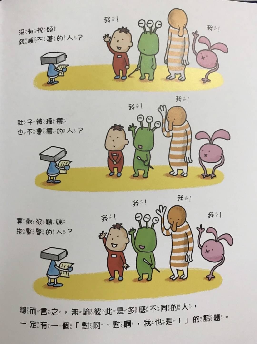 本來因為女兒剛開學想找相關的繪本而意外看到這麼有趣的書,雖然書本適讀年齡是4-8歲,但是吉竹伸介的畫風很可愛,我陸續買了幾本,二寶1Y10M也很買單,還是推薦給大家。