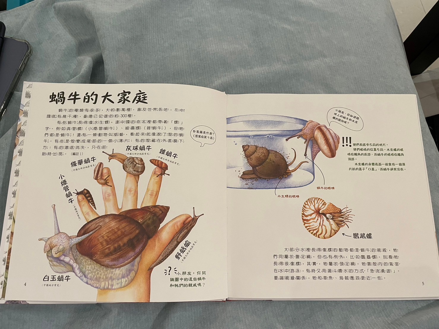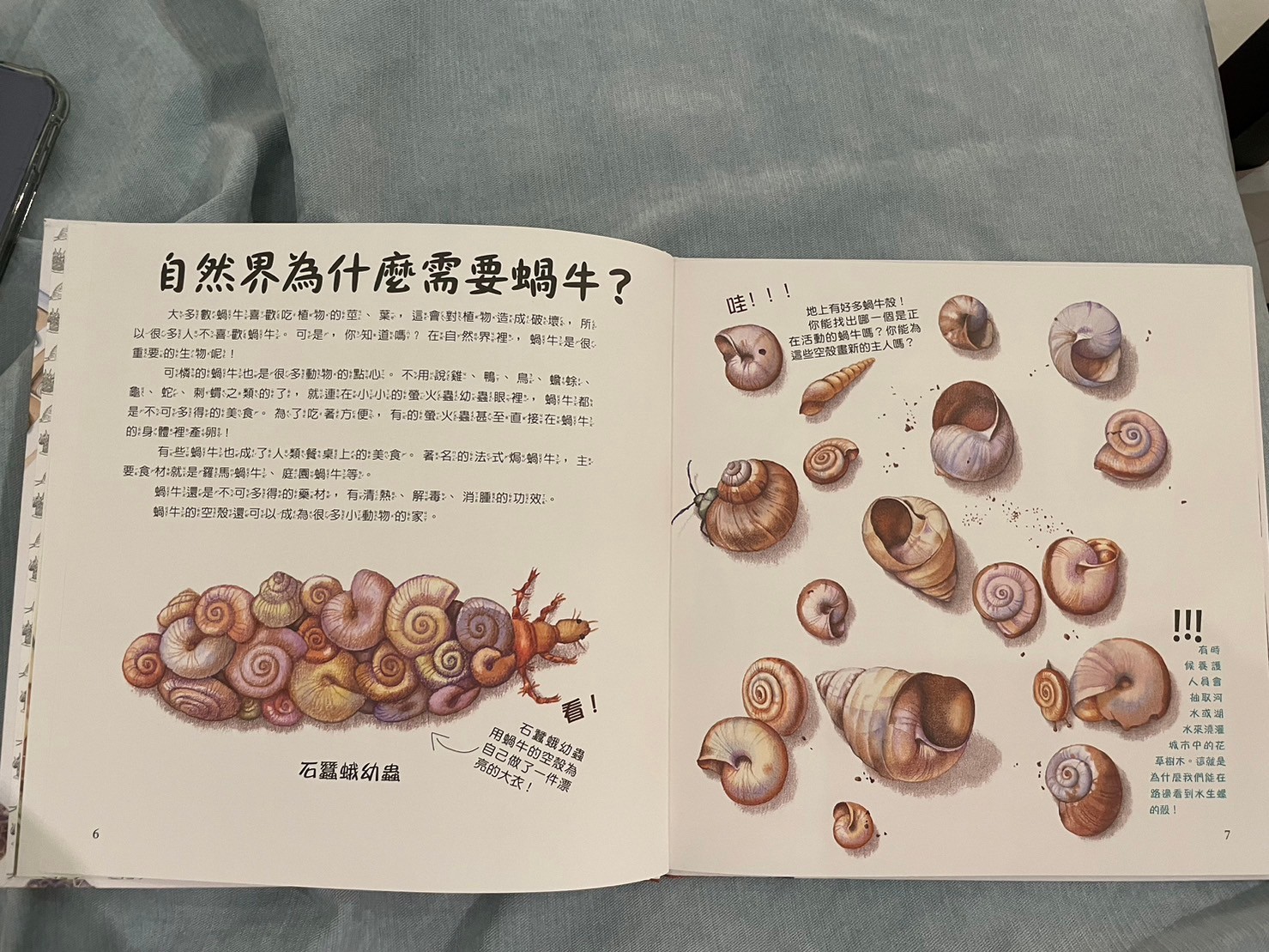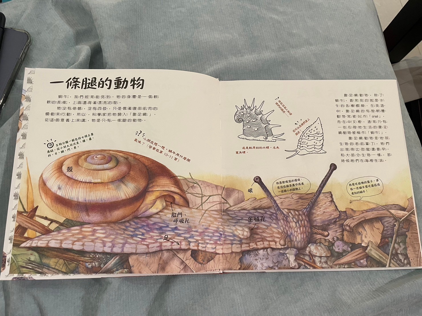 心得:這套是書展的贈書,但一套四本~其中莎莎最喜歡的就是蝸牛跟蚯蚓(果然還是比較愛動物類型)這套書的插畫很精美,內容也非常豐富,從書上爸爸媽媽也認識了很多蝸牛知識,分享蝸牛科普小知識: