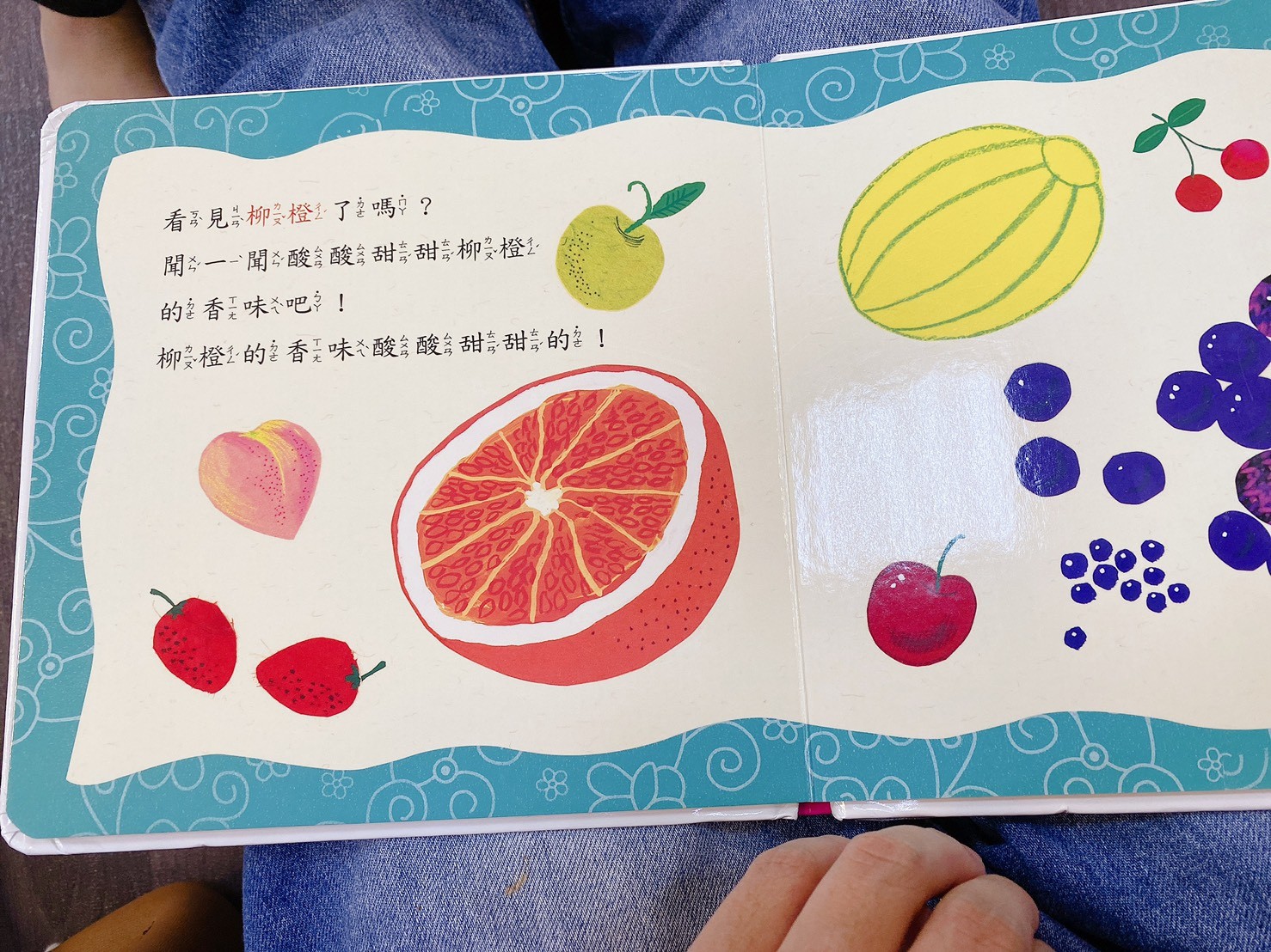 孩子第一次接觸這種有香味的繪本,,母子倆都覺得很特別每一頁都很認真的聞
