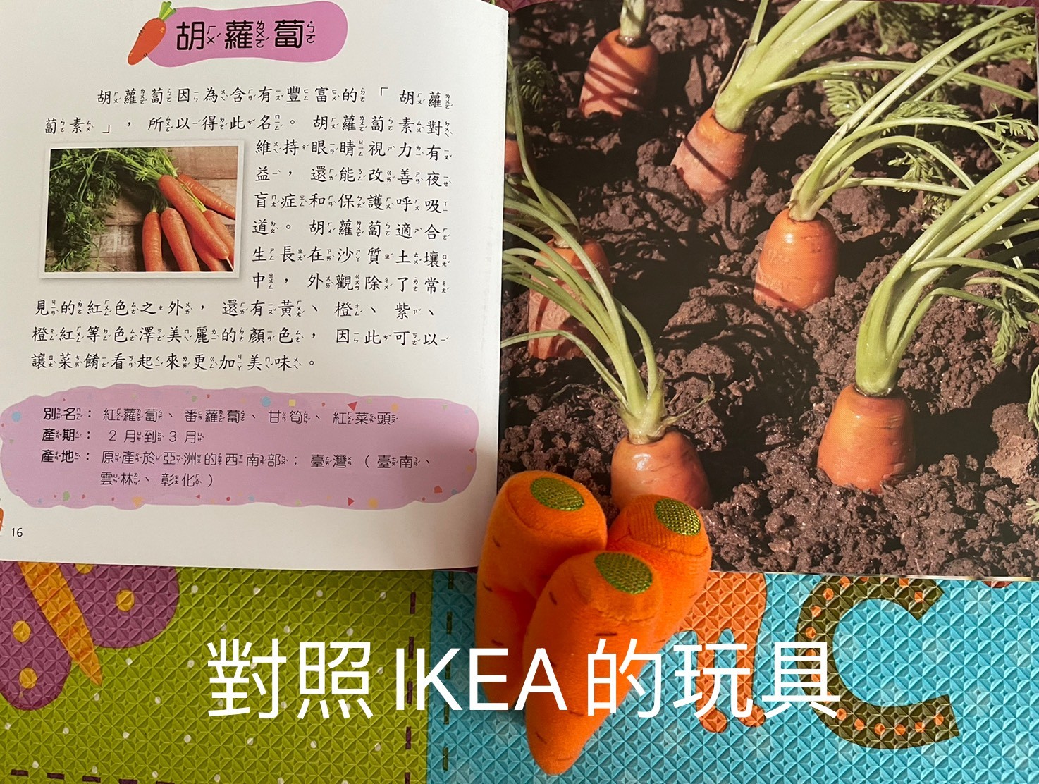 好翻、幼兒也能輕鬆翻閱。好找,大人可以在短時間內找到特定的蔬果照片。編排類似幼兒月刊,圖文並茂。