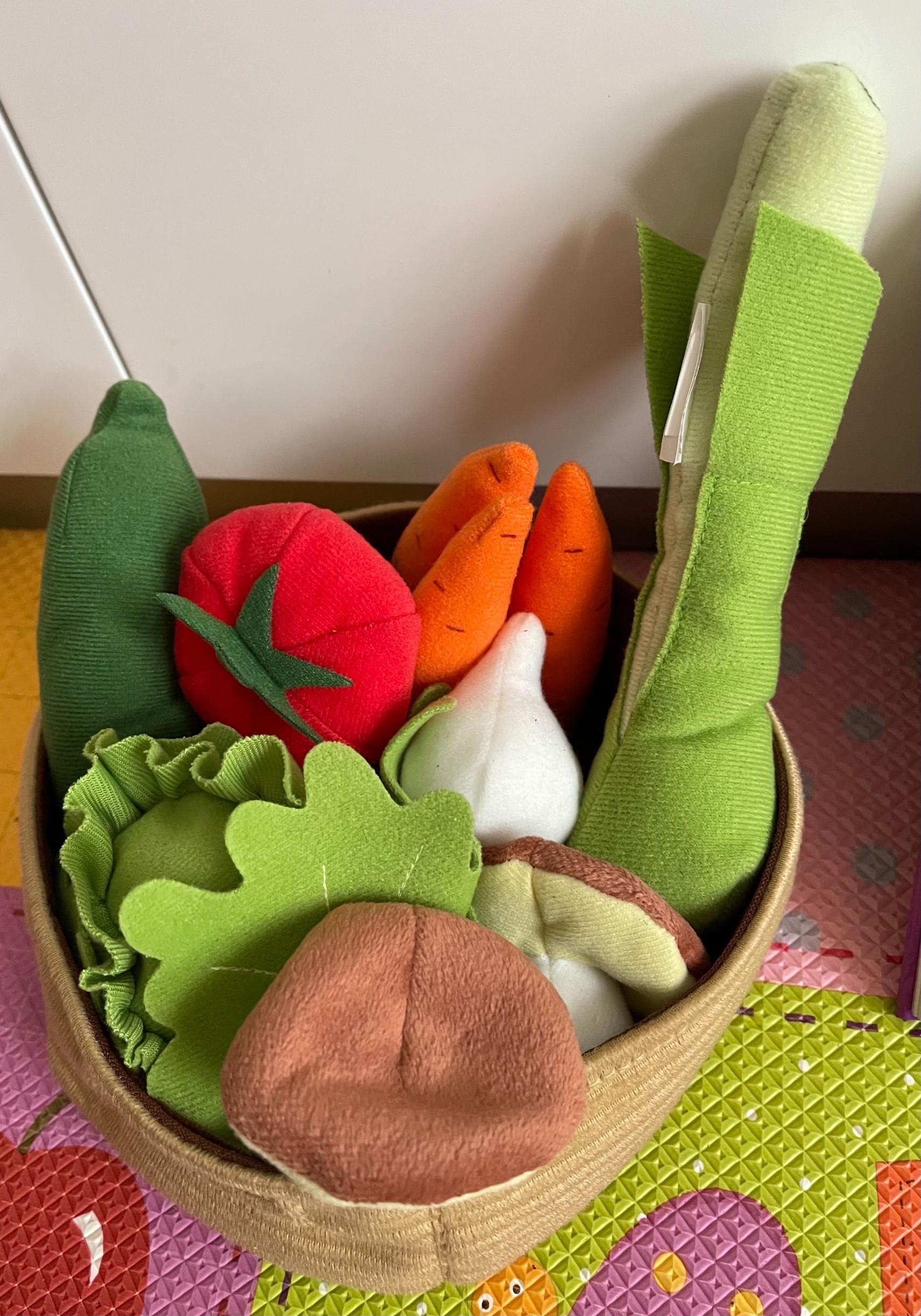 小孩很喜歡IKEA的玩具蔬果組,每天都會拿出來玩,尤其喜歡撕高麗菜的葉子,牙牙學語,指著問我說「(那是)什麼?」