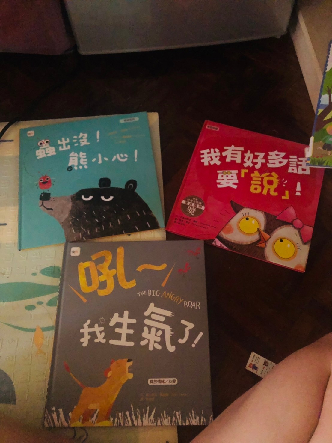 至於《吼~我生氣了》這本拿出來看到小獅子生氣會害怕,持續冷落中,《我有好多話要說》應該是年紀還沒到看不懂,以後看看有沒有機會分享。整體而言給四顆星星