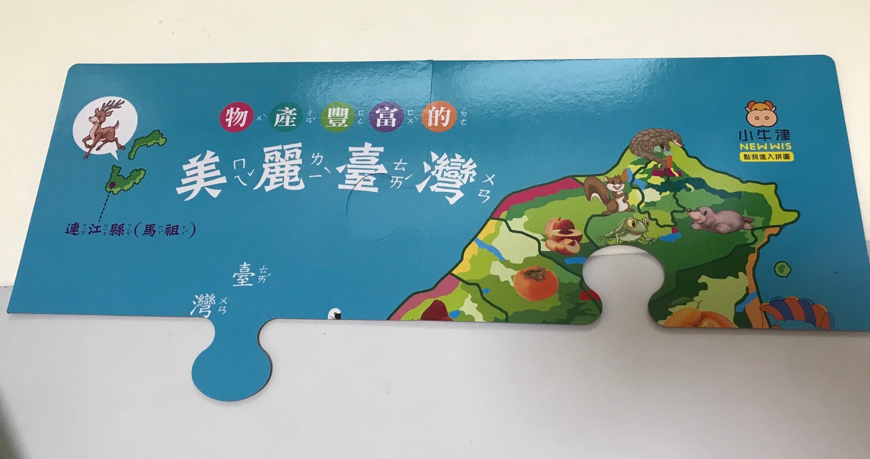 地圖拼圖有四層紙板厚度,很耐玩,圖面也很大,一小張拼圖大概是A4大小,完成後像是地板大拼圖,且一樣可以點讀聽介紹,玩問答遊戲。