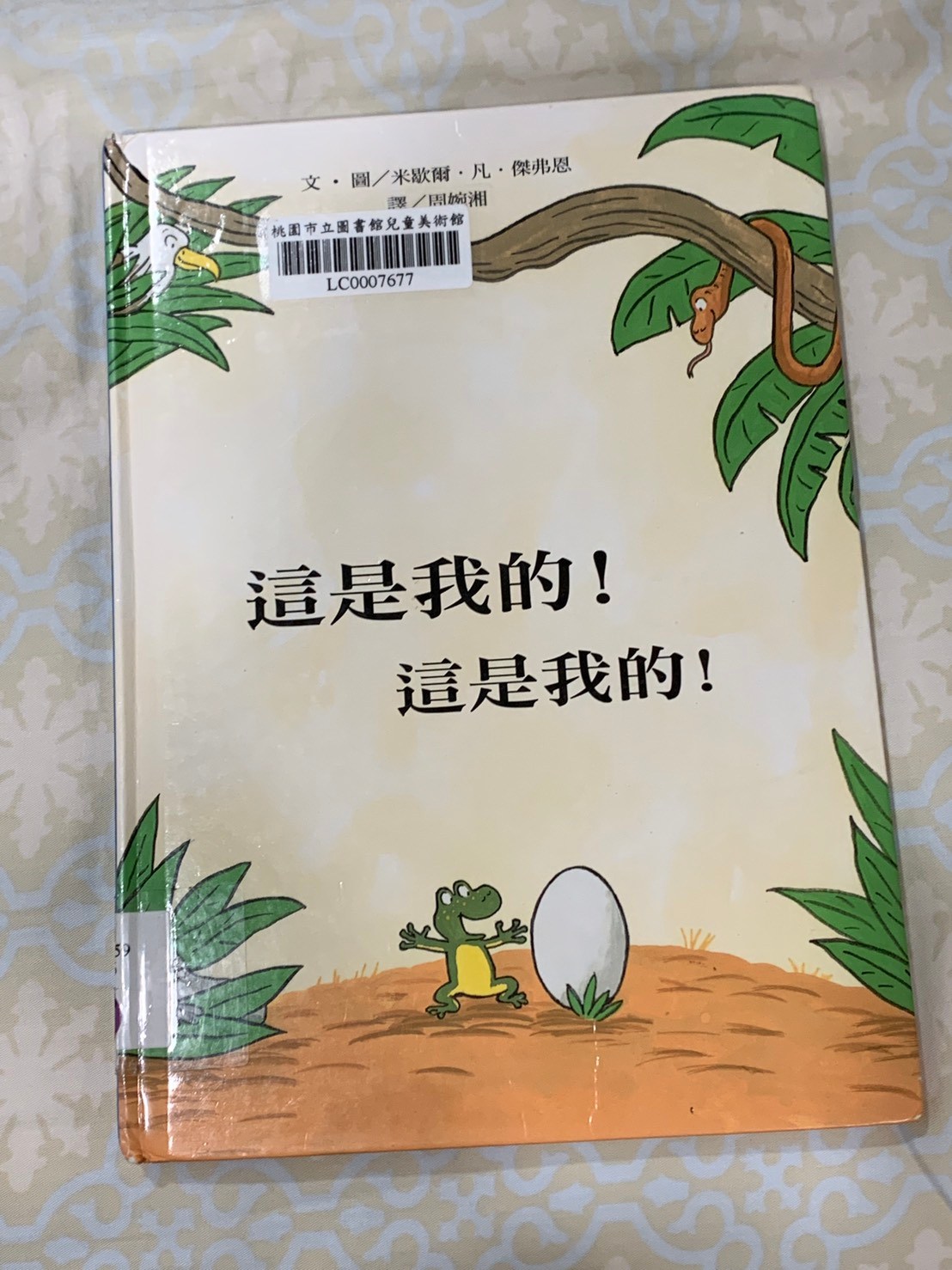 書的內容描述青蛙在叢林裡發現一顆蛋,開心的說「這是我的!」,陸續出現了蛇、老鷹、大蜥蜴也說「這是我的!」並爭搶了起來。