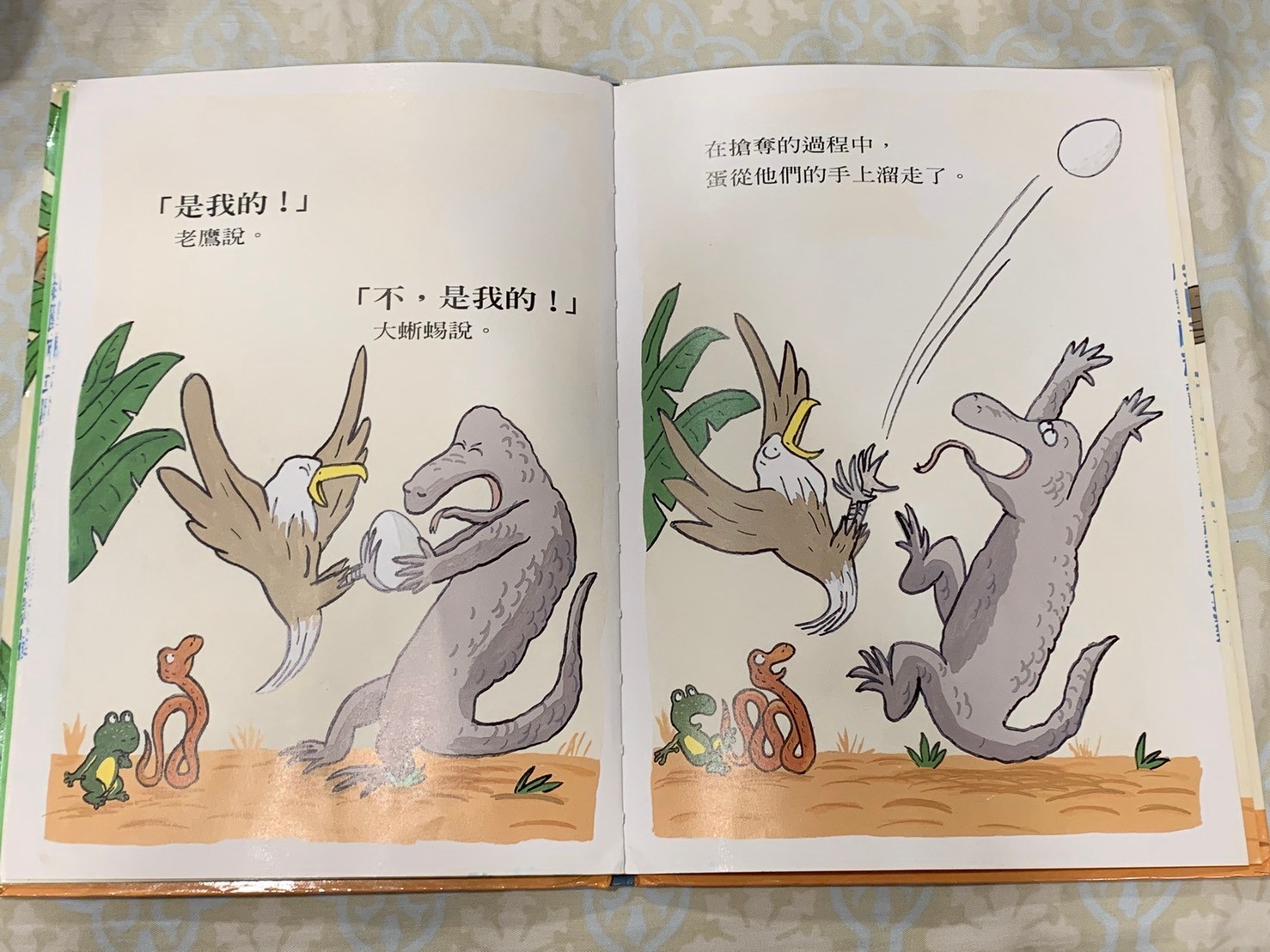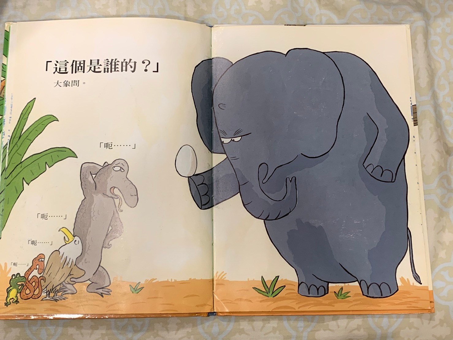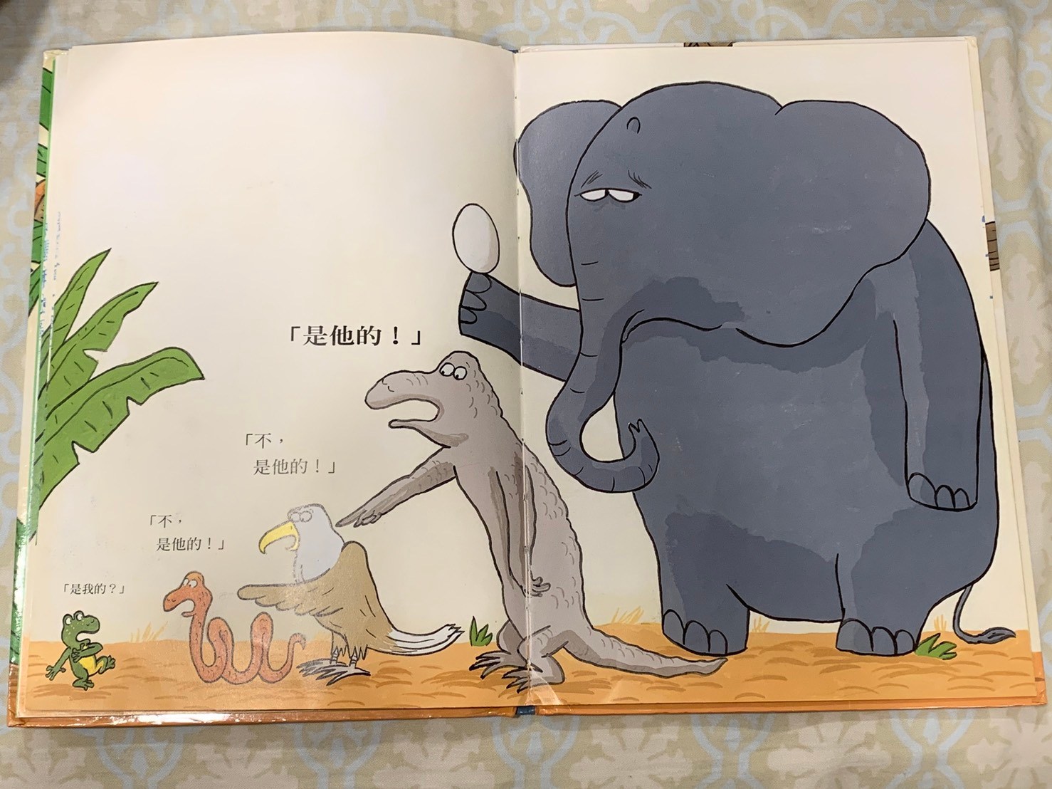 當初在圖書館翻這本書時,媽媽自己覺得內容很幽默所以就借回家了。在共讀時,會逐一問寶寶說你覺得這顆蛋是他的嗎?我兒都會開心的回答是後面再跟他解釋自己想要的跟需要的未必一樣,得到了也未必是好的,而且路邊撿到的東西應該要送警察局!