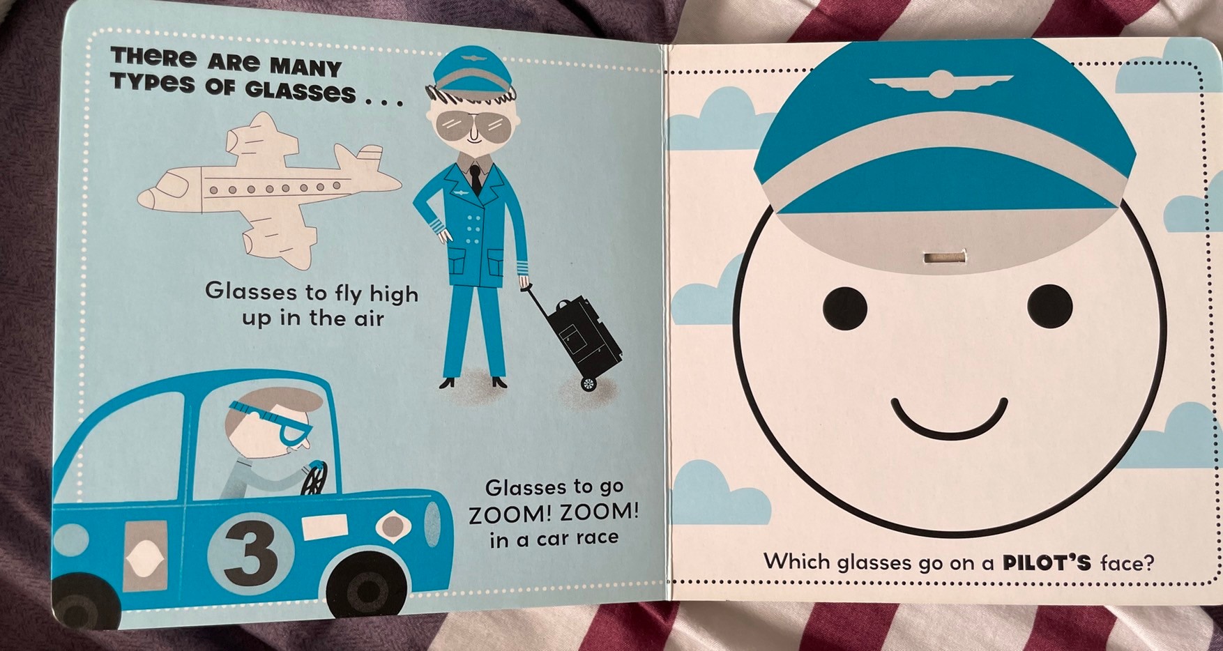 這是一本適合和小朋友一起認識眼鏡的書。小朋友看到這本馬上把眼鏡拿出來,幫機長,幫FAB,幫不同人物戴上不同眼鏡。