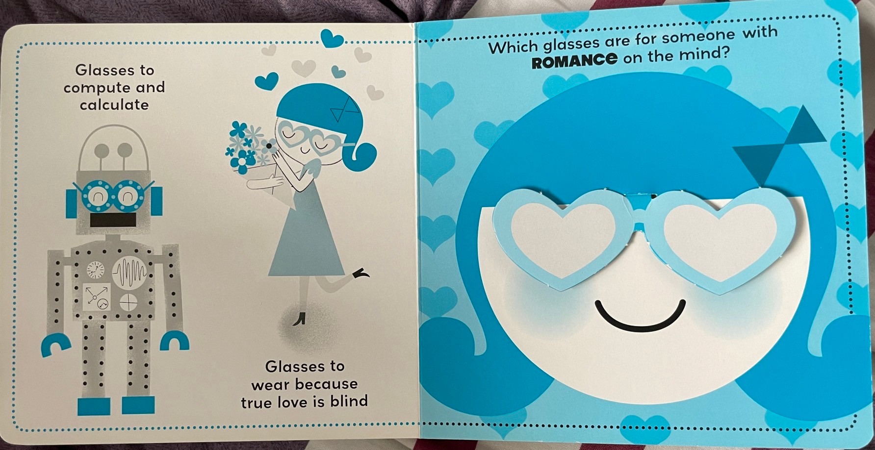 這本書最可愛的地方是有一句話:Glasses to wear is because true love is blind. (真愛真的是盲目的)