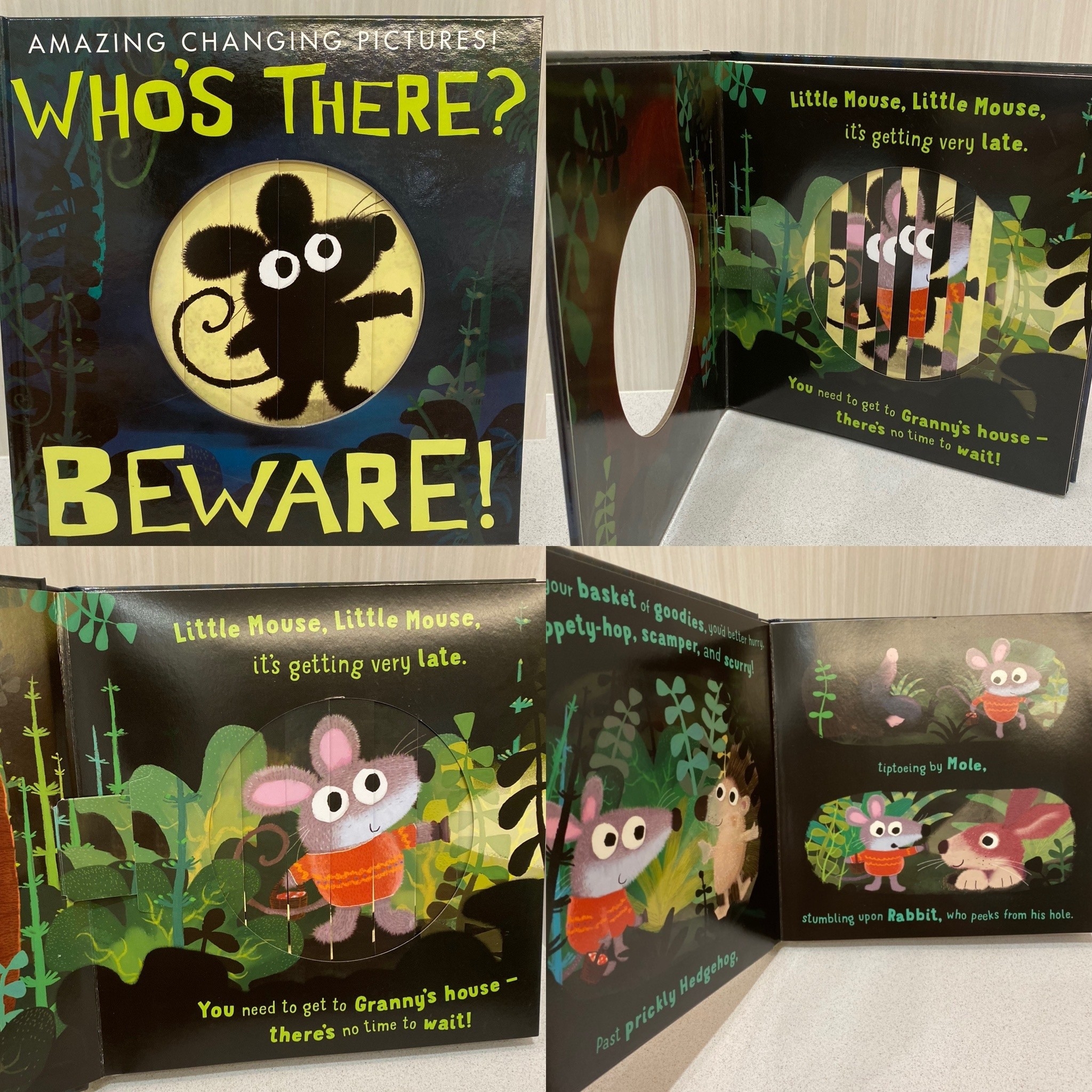 是英文硬頁的百葉窗翻翻書,用像百葉窗的推拉設計,搭配故事進行,拉開畫面立即變化,色彩對比鮮明,蠻吸引小孩的注意力。我女兒會翻來翻去,也會打開機關,機關好操作,書本算堅固。