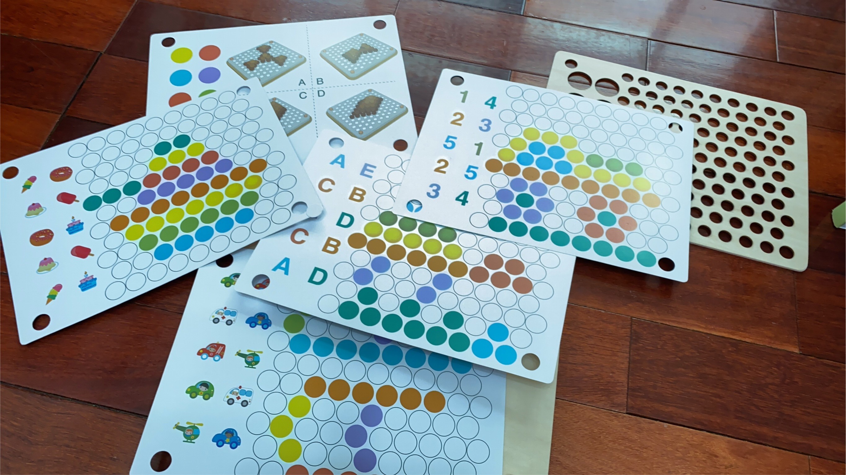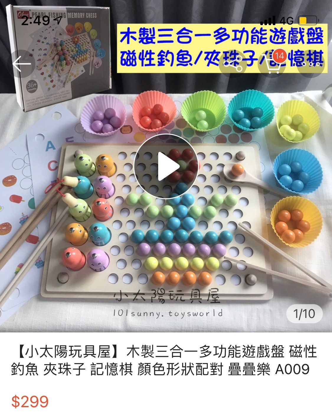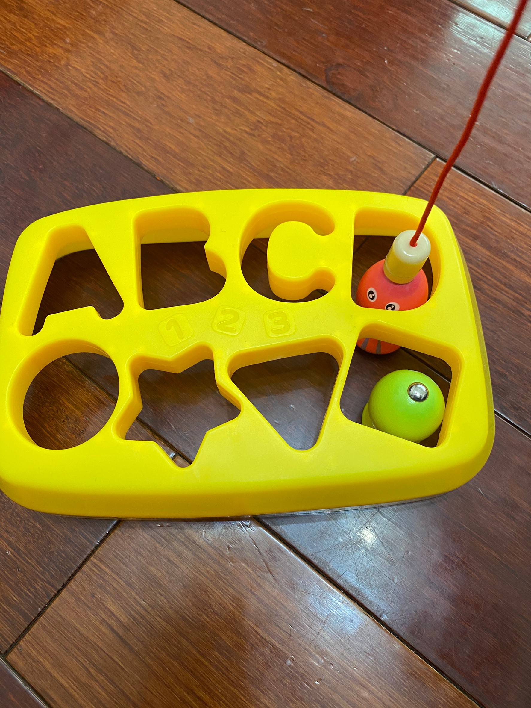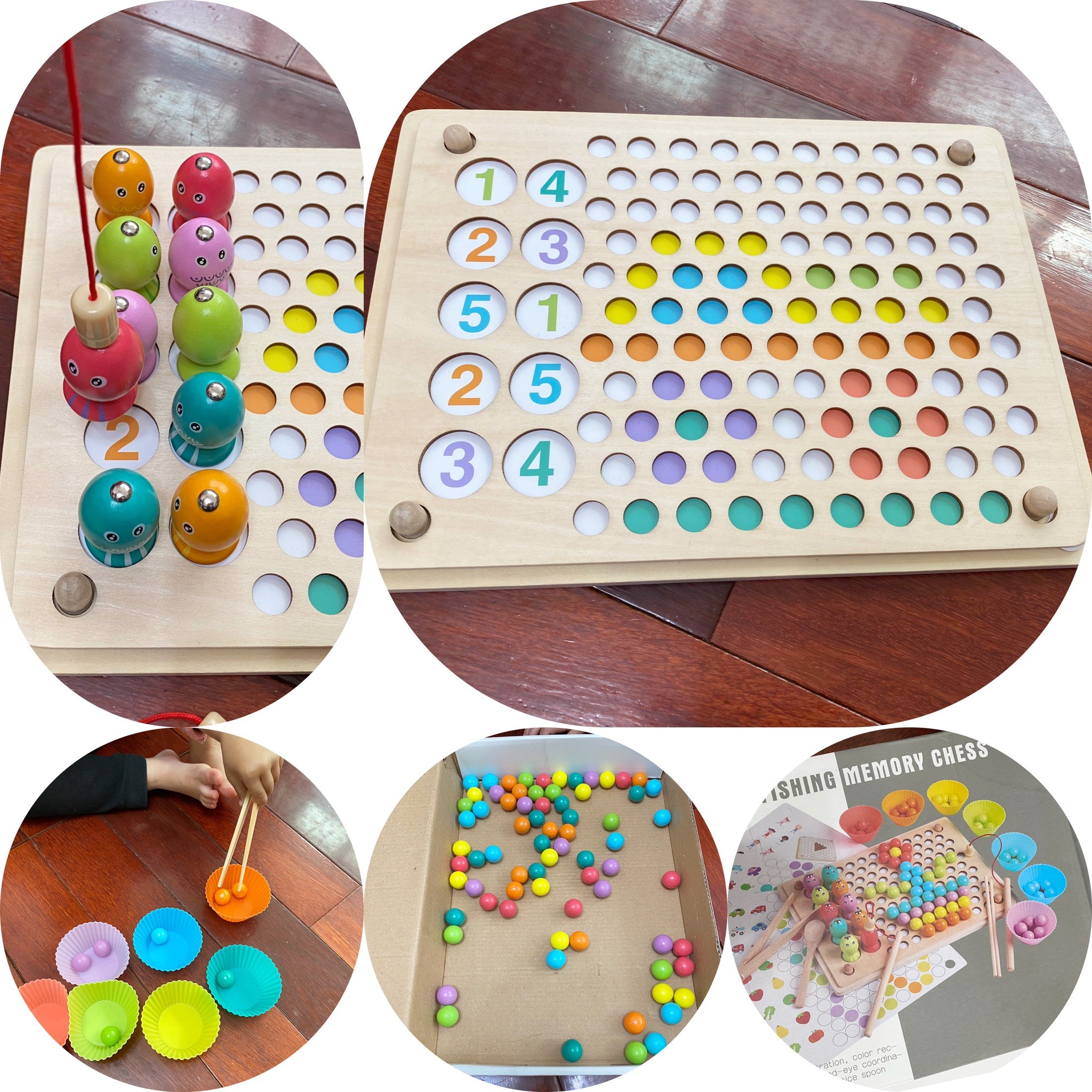 這組木製玩具是在女兒未滿一歲就購入的,當時只是單純的希望可以讓女兒練習用湯匙,所以買了這組來讓她用湯匙撈珠子~但後來比較深得她心的是釣魚遊戲(1y2m)一開始玩釣魚遊戲會有對不準的問題~為了增加她的信心~我就把魚放在固定位置(不讓它倒下)這樣成功率就高很多,釣到魚的女兒真的超級開心😊直到現在兩歲才開始練習珠子顏色分類以及用夾子夾珠子,前幾次都夾不起來,但成功就會露出得意的表情逗的我們哈哈大笑,這款玩具真的蠻推薦的,可以讓小朋友練習到小肌肉~也是最近都會指定要玩的玩具!