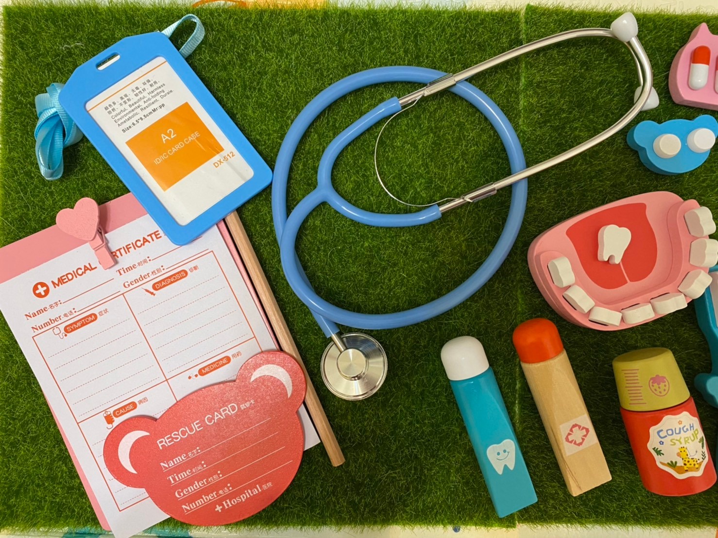 包裝很精緻,做工也蠻不錯的!重點是聽診器無敵真實!真的能聽到呼吸跟心跳聲!!針筒能伸縮按!還有附上醫生的掛牌跟書寫單!