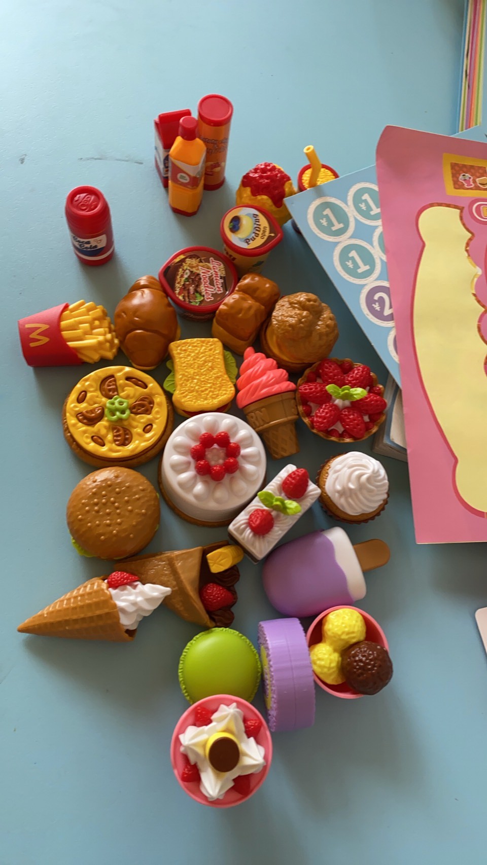 最近大家都燃起烘焙魂,但媽媽最近加班加太兇還沒空做,但可以來個甜點積木🔥一下大家!本來想買之前樂樂那組木製下午茶組合,無意間發現這個,覺得太可愛了!又小小的,感覺不太佔空間,立刻包了全部食物+甜點車,多的甜點跟樂樂拿去交換木製牛奶跟雞蛋了