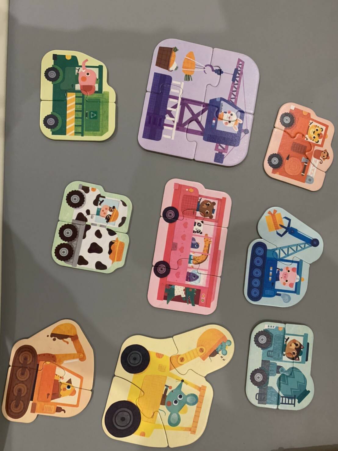 今天終於收到貨拿給兒子玩,先開了「隆!大車」給兒子玩,覺得這真的超棒~裡面很多都2片就完成一台車,相較之前亂買的4-6片拼圖,這套比較有成就感,加上兒子已經會把拼圖上「凸凸地方的塞進凹凹的地方」,所以很快就可以完成,然後兒子就更愛這套了🤣~ 大力推薦給有愛車車寶寶的媽咪,這套很適合當入門款拼圖😊