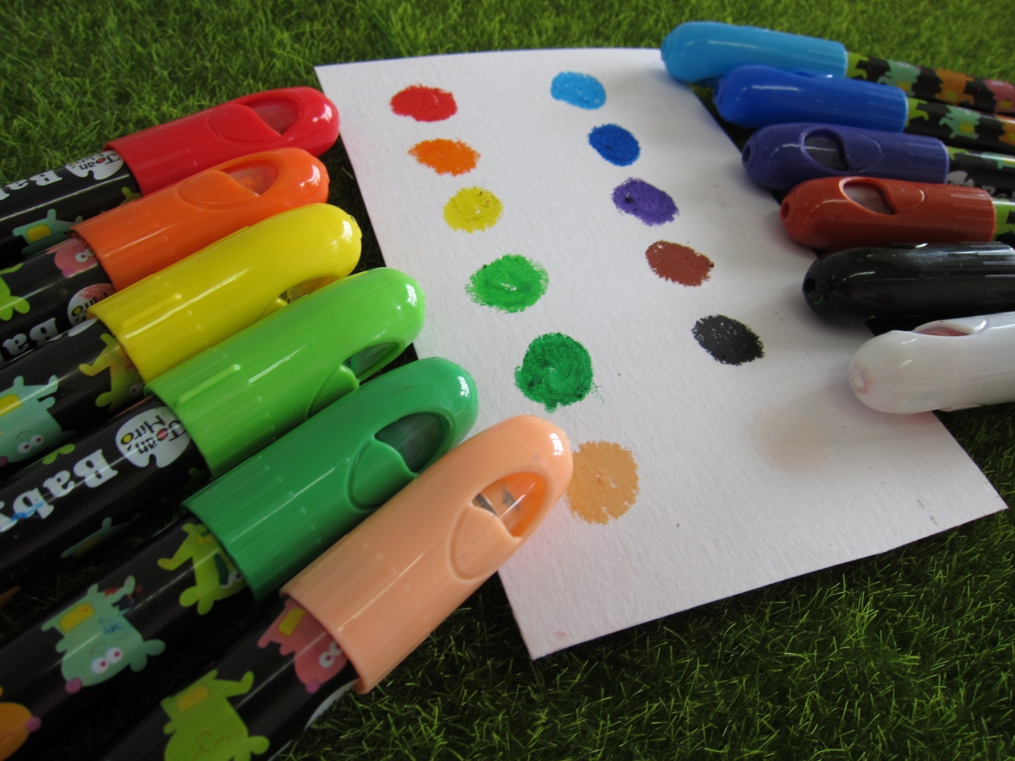 雄獅的蠟筆有分油蠟筆跟粉蠟筆,油蠟筆比較適合學齡前的小孩使用。