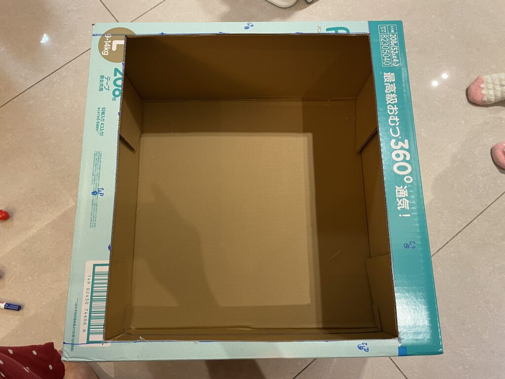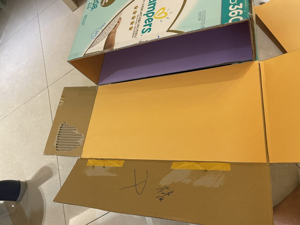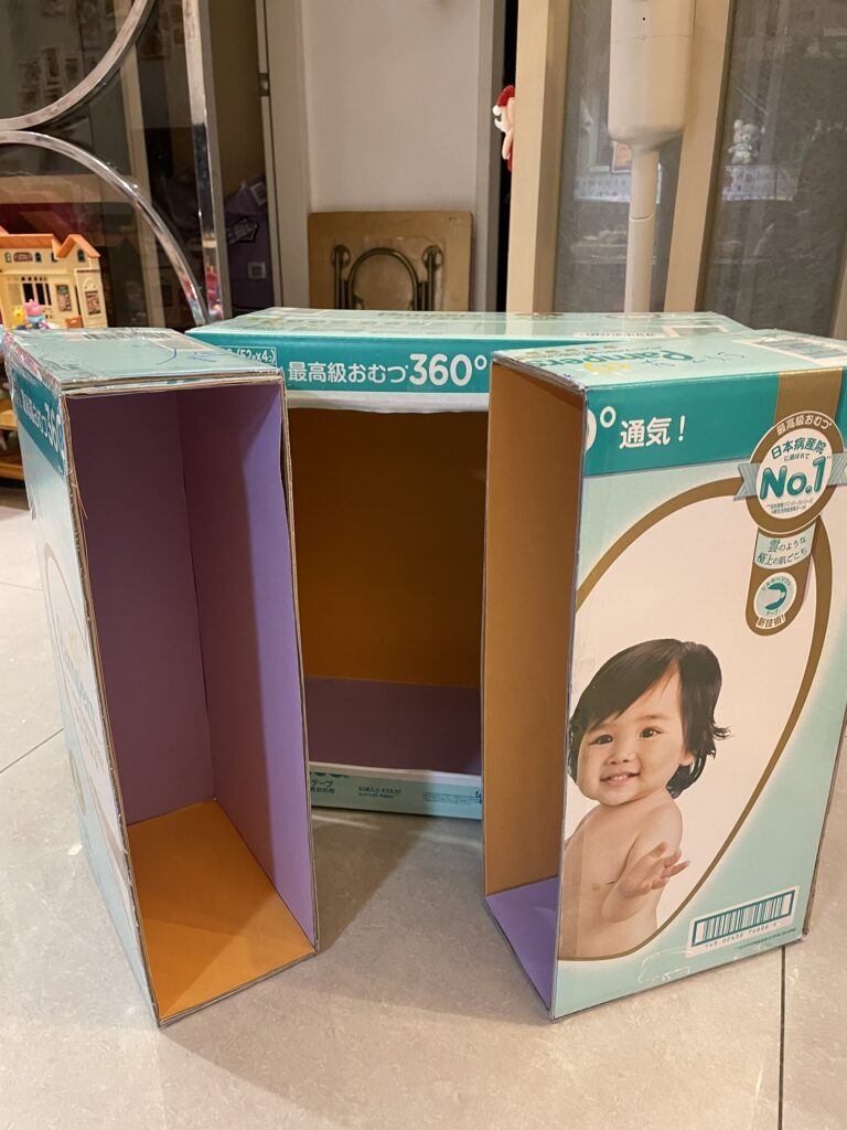 1.兩個大小適當的紙箱 (我使用好X多幫寶適一級棒黏貼型L兩個)