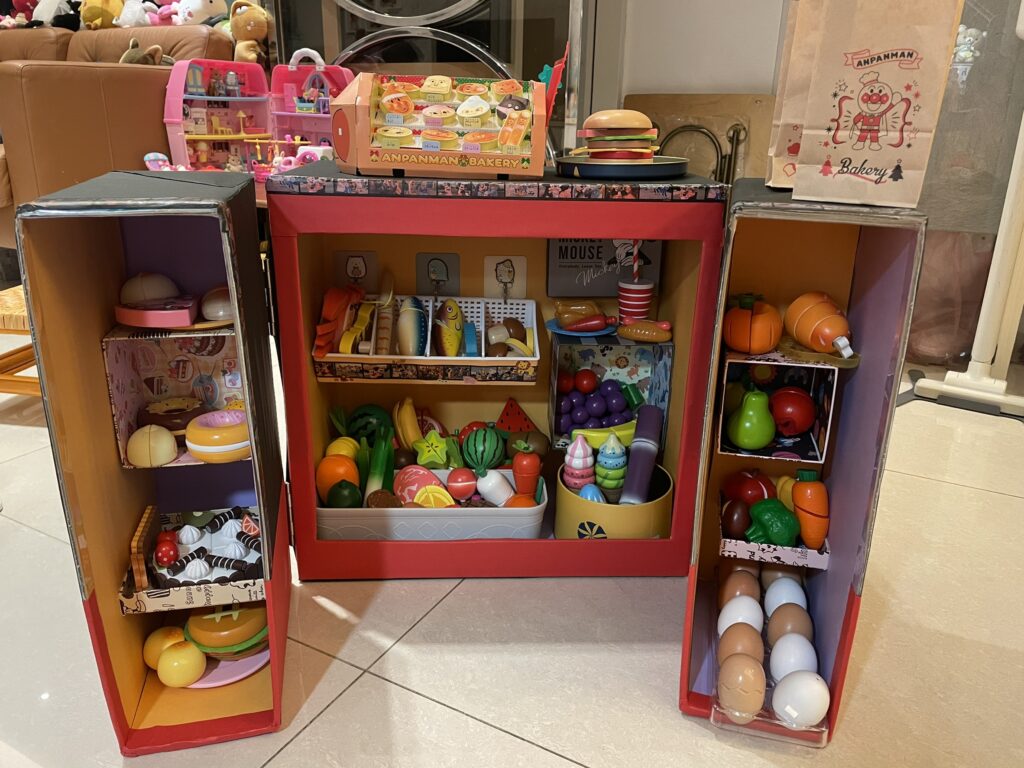 Tips: 切開1/4冰箱的時候,趁還沒兩個黏在一起錢,先將內部貼皮,省時省力