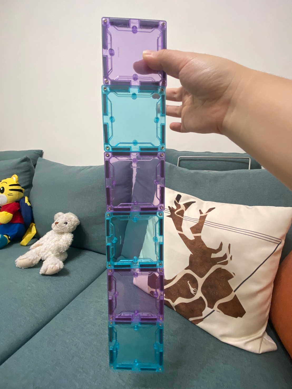 章魚燒現在2歲5個月快6個月,這個時期入手磁力片很剛好,願意一起玩也會自己玩,可以訓練空間感和創造力,個人覺得和樂高德寶等積木沒有太大的衝突,推薦給家裡沒有磁力片的朋友入手。