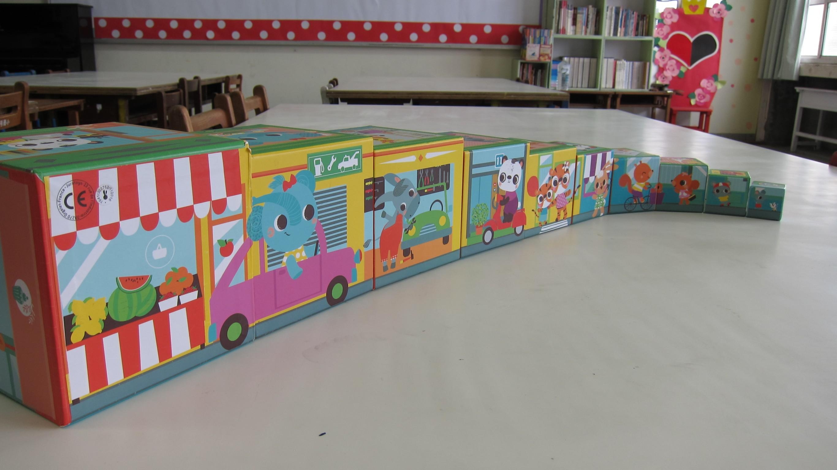 janod立體大拼圖!!一款畫風細膩,質感非常漂亮的方型立體拼圖,有五個面都能拚成超大的高樓,可以拚多高呢,約100公分吧!!