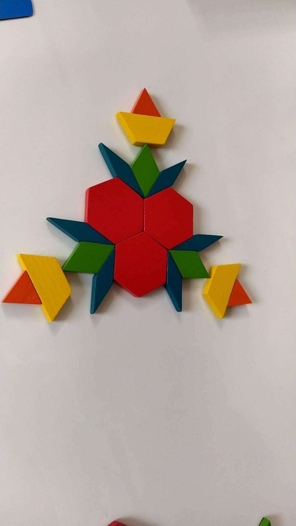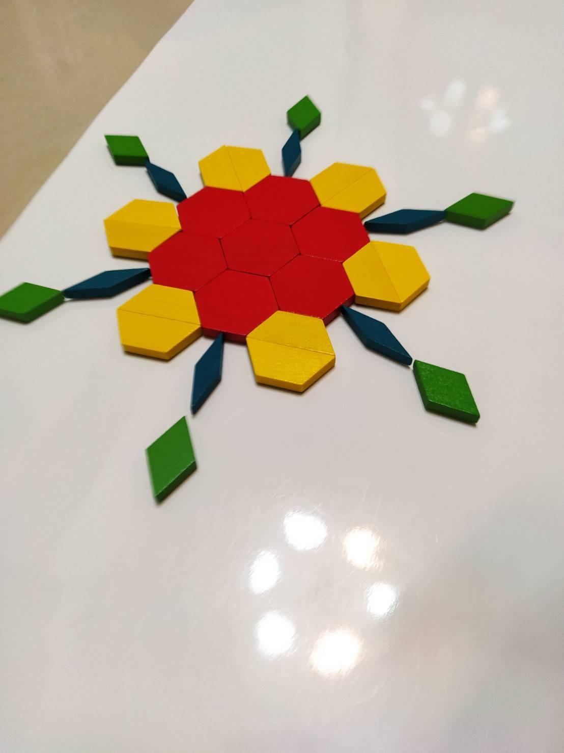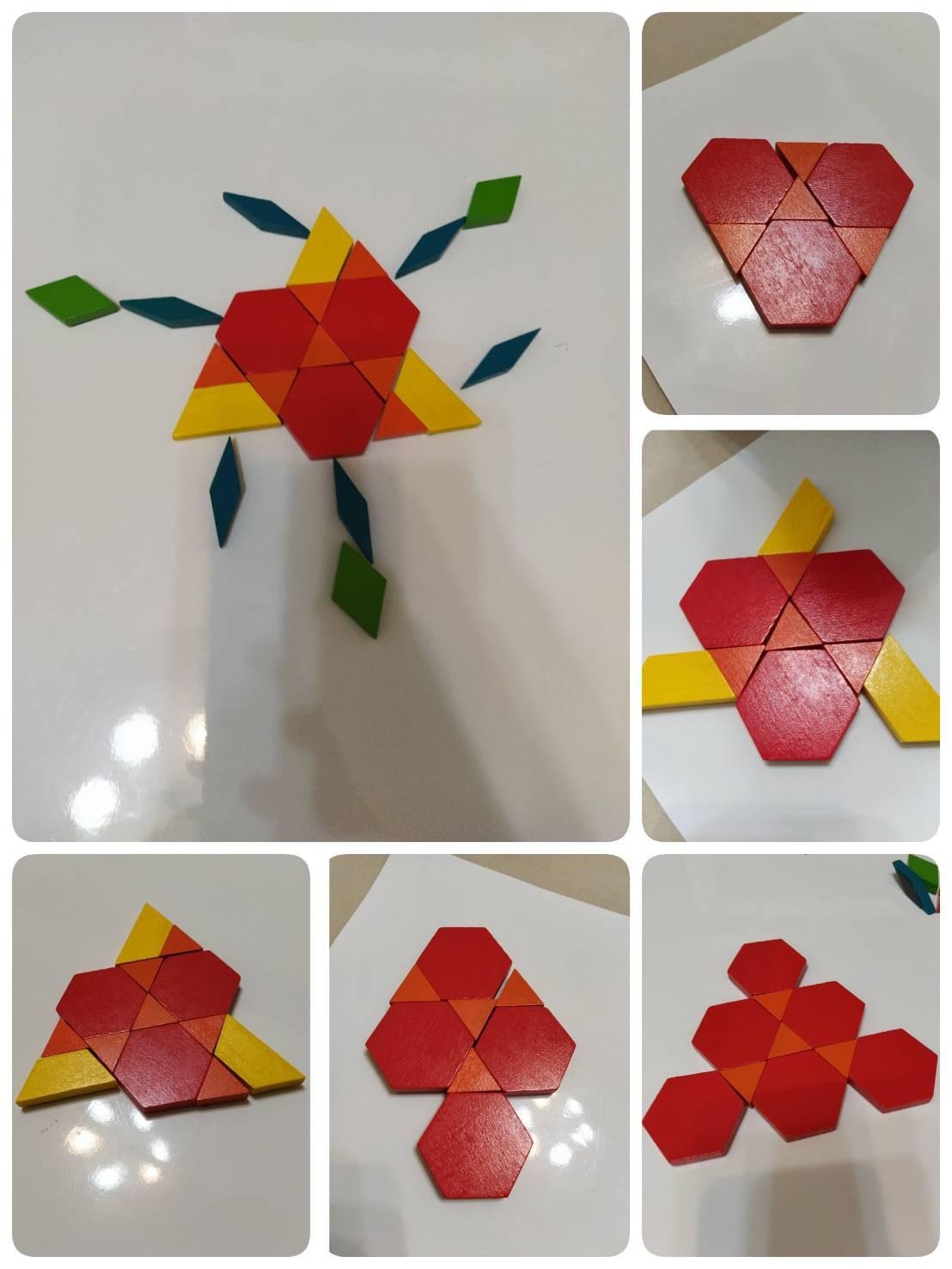 媽媽怎麼引導孩子,當他拼好圖案的時候,一起討論這個圖案像什麼?還需要延伸嗎?延伸後又變成什麼?幾次之後,孩子會有自己的創造力。再次跟各位家長說,不要先幫孩子預設答案,讓它們先說,再一起討論。